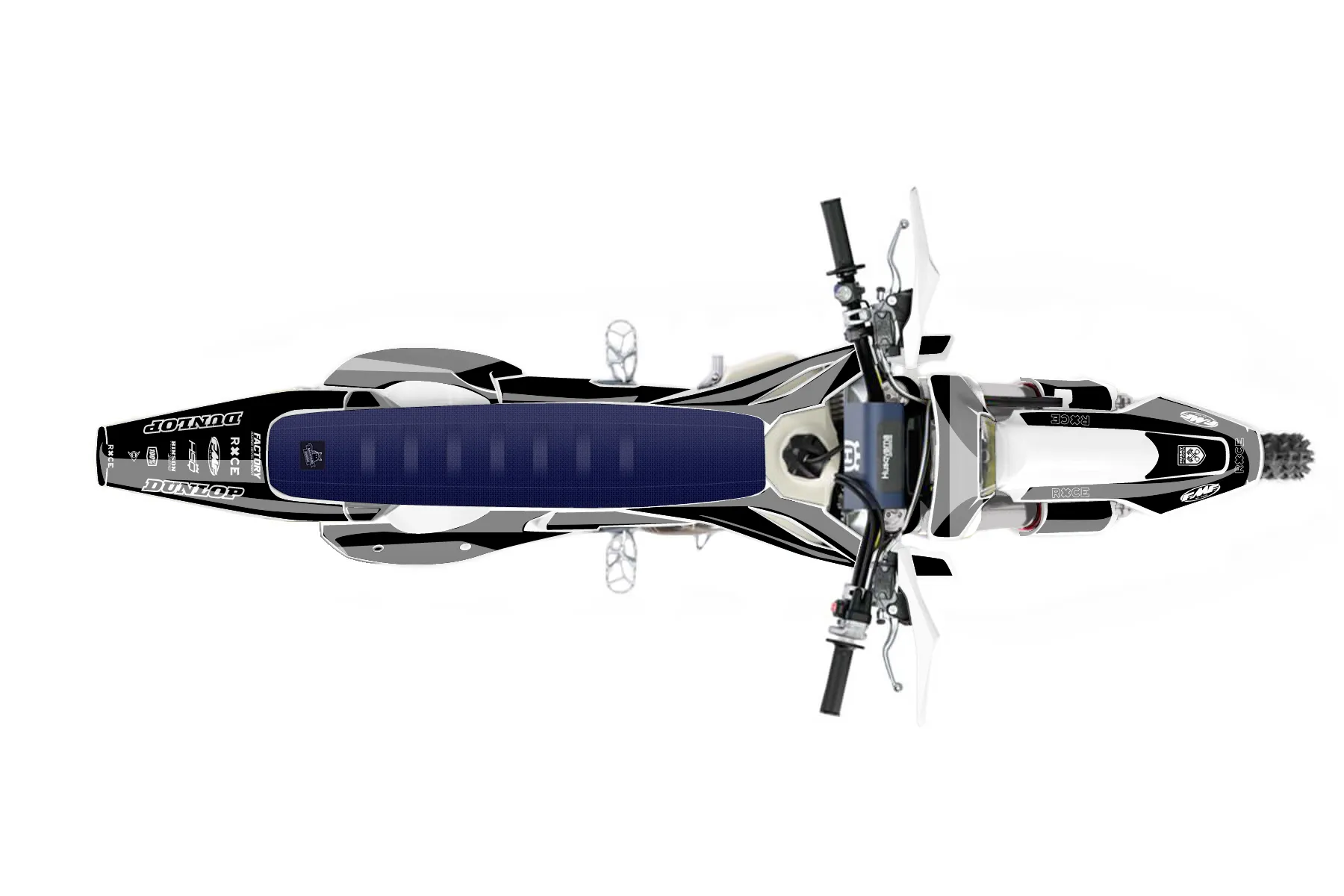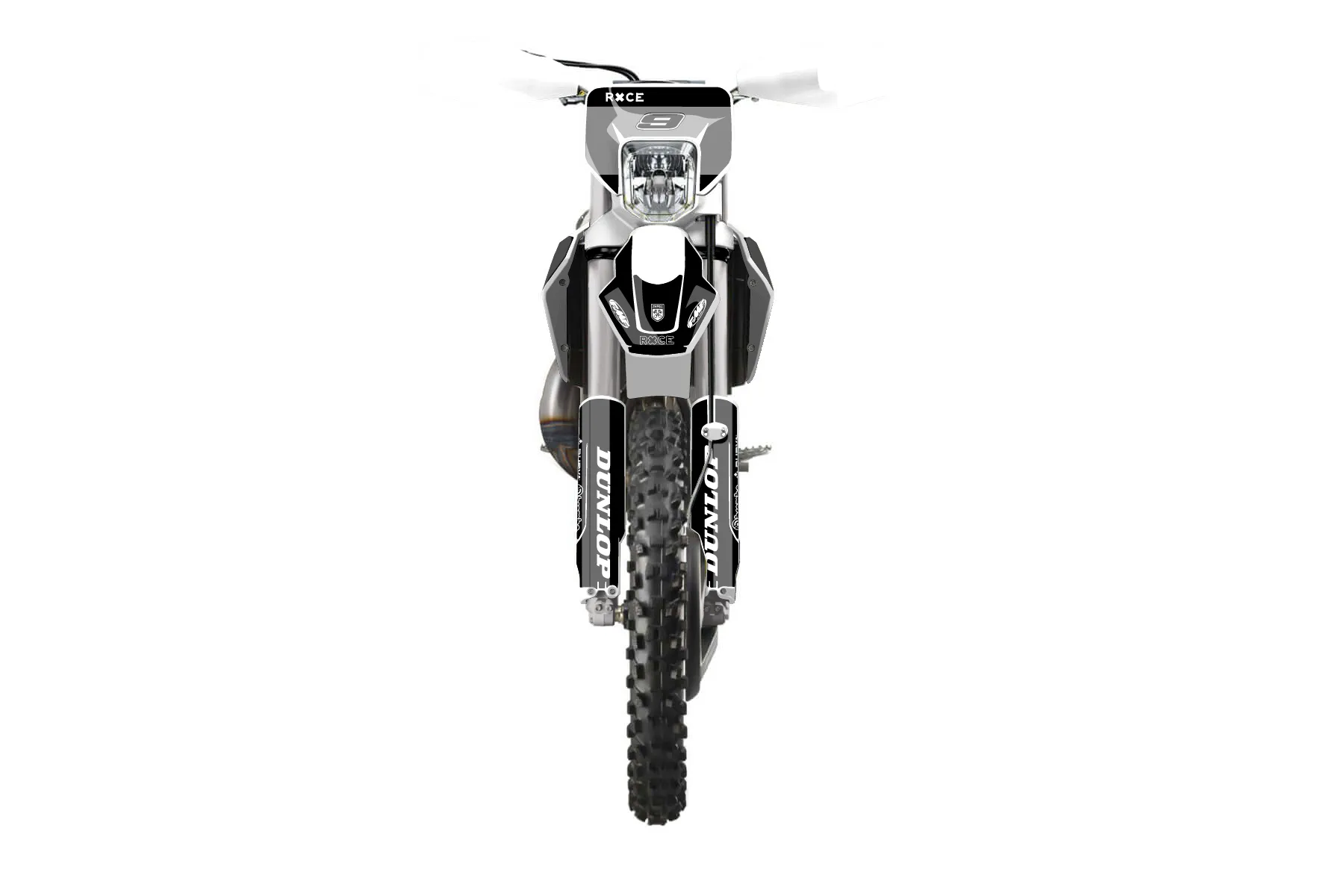 «te 150 design 1» — готовый комплект графики серии Flow для Husqvarna Enduro Graphic Kit Husqvarna TE 300 2024. В комплекте: графика на бак и боковые облицовки, крылья (переднее и заднее), передний щиток, номерные таблички, защита вилки. Материал: ПВХ-винил 80 мкр с холодной ламинацией 300 мкр, общая толщина 380 мкр; покрытие глянцевое или матовое на выбор. Устойчив к UV-излучению, воде, бензину и мойке высокого давления. Клей акриловый на сольвентной основе — постоянный, для гибких пластиков. На простых поверхностях монтируется без нагрева; для сложных изгибов рекомендуем фен. Этот пресет можно заказать как есть или взять за основу в конструкторе: поменять цвета, добавить стартовый номер и свой бренд. Производство — 3–5 рабочих дней, доставка по России СДЭКом или Почтой, по СНГ — курьерскими службами.