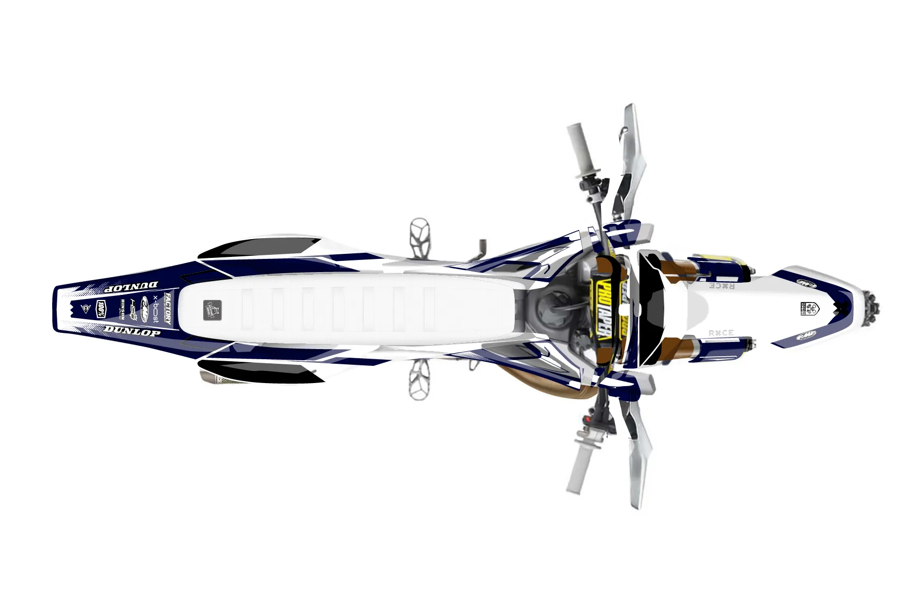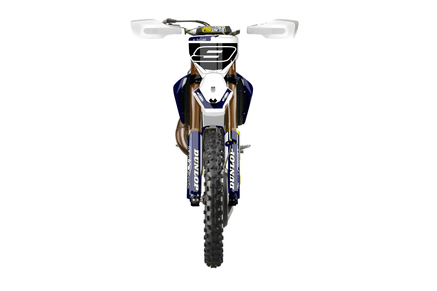 «Myth» — готовый комплект графики серии Maverick для Husqvarna Enduro Graphic Kit Husqvarna TX 300 2016. В комплекте: графика на бак и боковые облицовки, крылья (переднее и заднее), передний щиток, номерные таблички, защита вилки. Материал: ПВХ-винил 80 мкр с холодной ламинацией 300 мкр, общая толщина 380 мкр; покрытие глянцевое или матовое на выбор. Устойчив к UV-излучению, воде, бензину и мойке высокого давления. Клей акриловый на сольвентной основе — постоянный, для гибких пластиков. На простых поверхностях монтируется без нагрева; для сложных изгибов рекомендуем фен. Этот пресет можно заказать как есть или взять за основу в конструкторе: поменять цвета, добавить стартовый номер и свой бренд. Производство — 3–5 рабочих дней, доставка по России СДЭКом или Почтой, по СНГ — курьерскими службами.