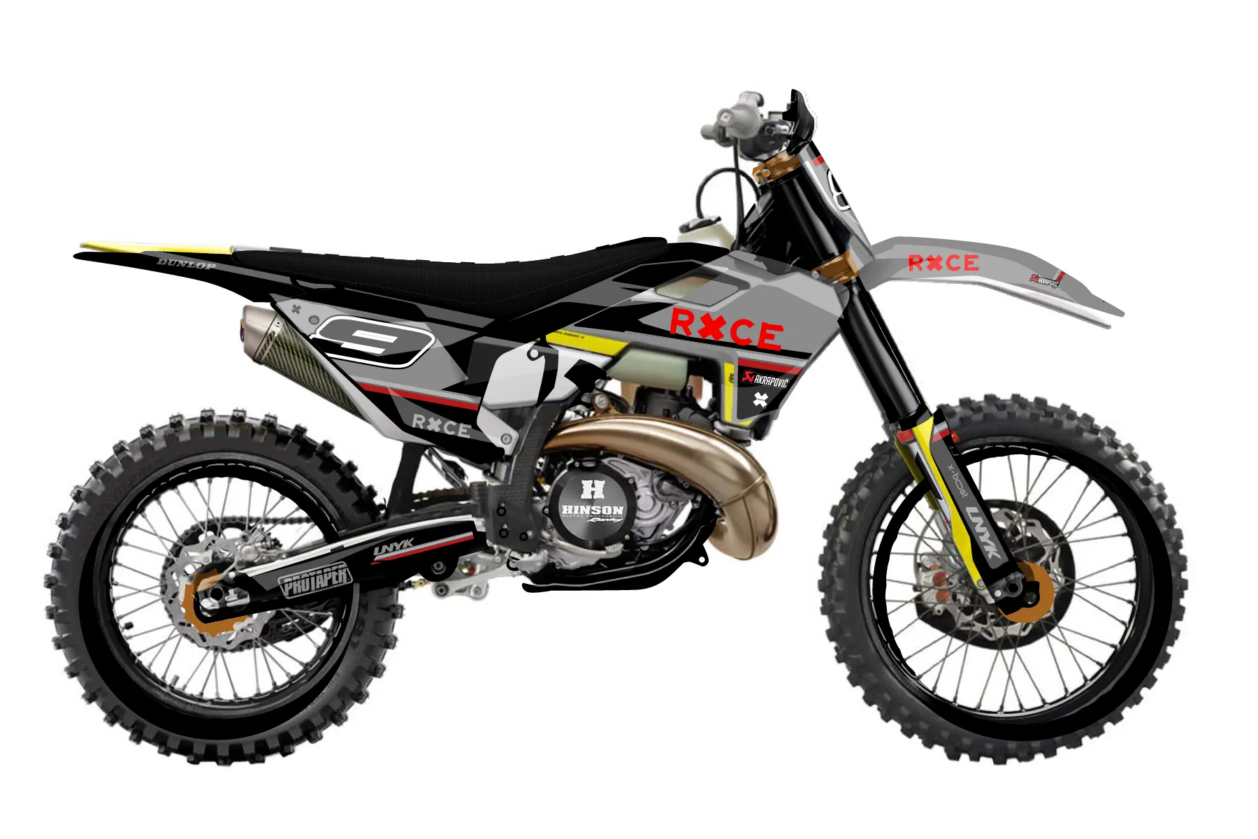 «Rule» — готовый комплект графики серии Maverick для Husqvarna Enduro Graphic Kit Husqvarna TX 300 2016. В комплекте: графика на бак и боковые облицовки, крылья (переднее и заднее), передний щиток, номерные таблички, защита вилки. Материал: ПВХ-винил 80 мкр с холодной ламинацией 300 мкр, общая толщина 380 мкр; покрытие глянцевое или матовое на выбор. Устойчив к UV-излучению, воде, бензину и мойке высокого давления. Клей акриловый на сольвентной основе — постоянный, для гибких пластиков. На простых поверхностях монтируется без нагрева; для сложных изгибов рекомендуем фен. Этот пресет можно заказать как есть или взять за основу в конструкторе: поменять цвета, добавить стартовый номер и свой бренд. Производство — 3–5 рабочих дней, доставка по России СДЭКом или Почтой, по СНГ — курьерскими службами.