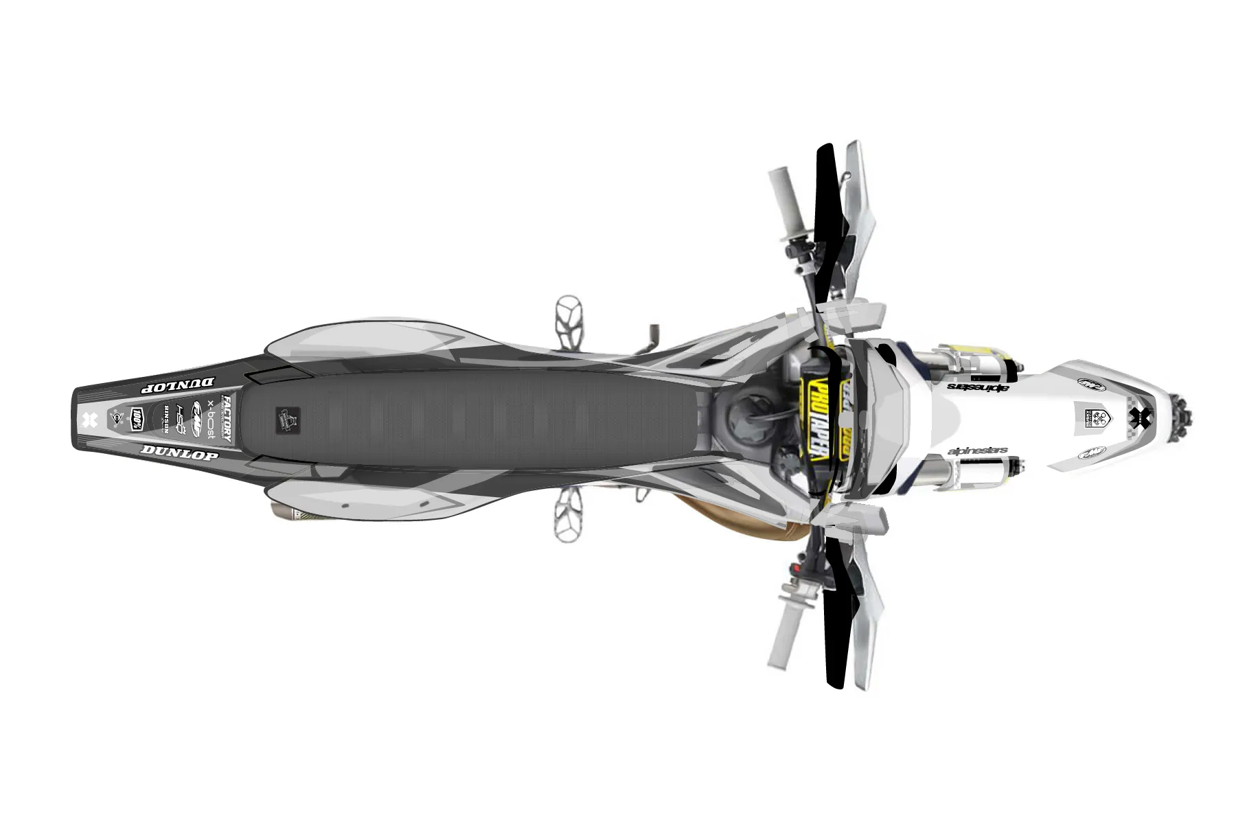 «CustomDesignlatest2» — готовый комплект графики серии Staple для Husqvarna Enduro Graphic Kit Husqvarna TX 300 2016. В комплекте: графика на бак и боковые облицовки, крылья (переднее и заднее), передний щиток, номерные таблички, защита вилки. Материал: ПВХ-винил 80 мкр с холодной ламинацией 300 мкр, общая толщина 380 мкр; покрытие глянцевое или матовое на выбор. Устойчив к UV-излучению, воде, бензину и мойке высокого давления. Клей акриловый на сольвентной основе — постоянный, для гибких пластиков. На простых поверхностях монтируется без нагрева; для сложных изгибов рекомендуем фен. Этот пресет можно заказать как есть или взять за основу в конструкторе: поменять цвета, добавить стартовый номер и свой бренд. Производство — 3–5 рабочих дней, доставка по России СДЭКом или Почтой, по СНГ — курьерскими службами.