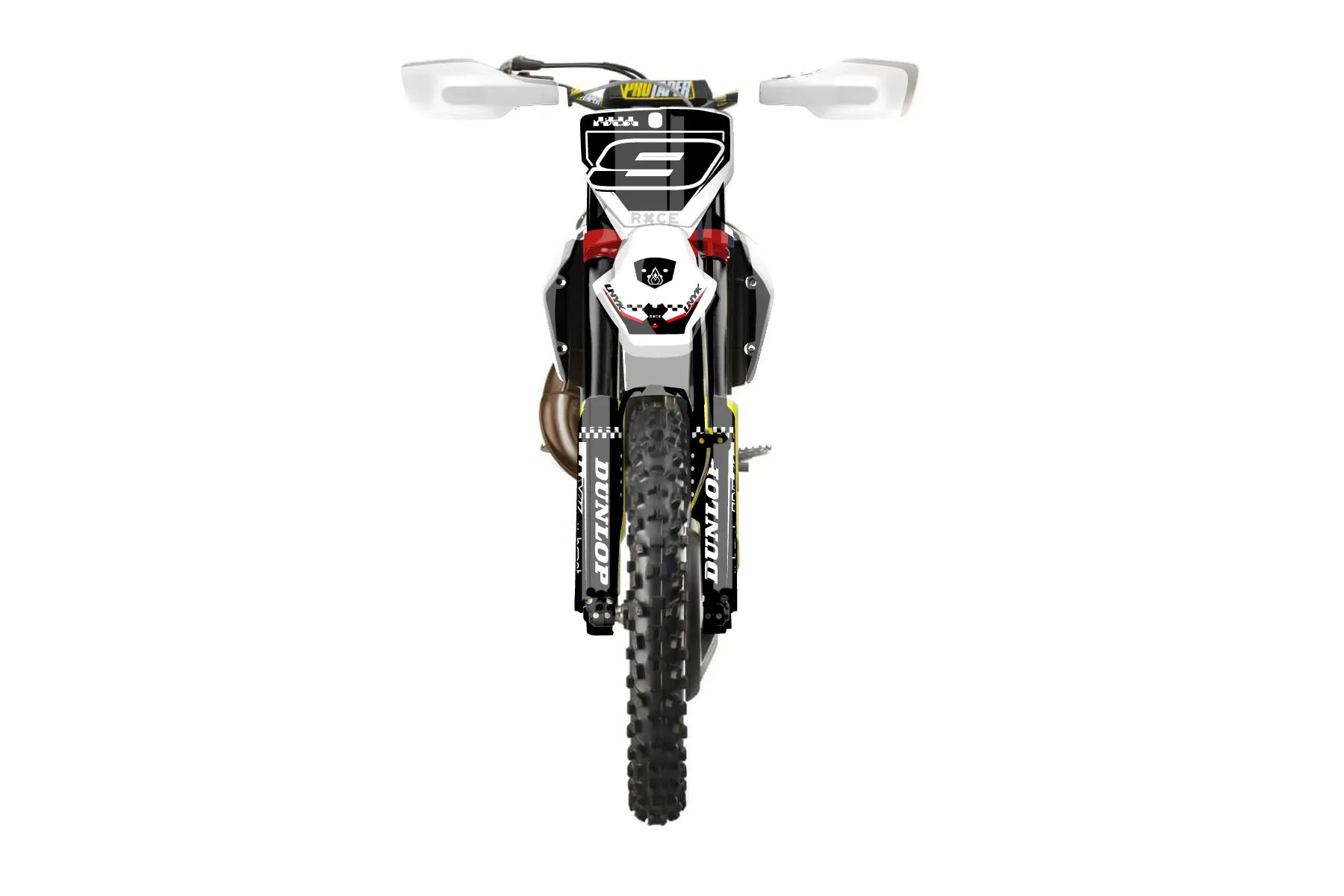 «Spirit» — готовый комплект графики серии Staple для Husqvarna Enduro Graphic Kit Husqvarna TX 300 2016. В комплекте: графика на бак и боковые облицовки, крылья (переднее и заднее), передний щиток, номерные таблички, защита вилки. Материал: ПВХ-винил 80 мкр с холодной ламинацией 300 мкр, общая толщина 380 мкр; покрытие глянцевое или матовое на выбор. Устойчив к UV-излучению, воде, бензину и мойке высокого давления. Клей акриловый на сольвентной основе — постоянный, для гибких пластиков. На простых поверхностях монтируется без нагрева; для сложных изгибов рекомендуем фен. Этот пресет можно заказать как есть или взять за основу в конструкторе: поменять цвета, добавить стартовый номер и свой бренд. Производство — 3–5 рабочих дней, доставка по России СДЭКом или Почтой, по СНГ — курьерскими службами.