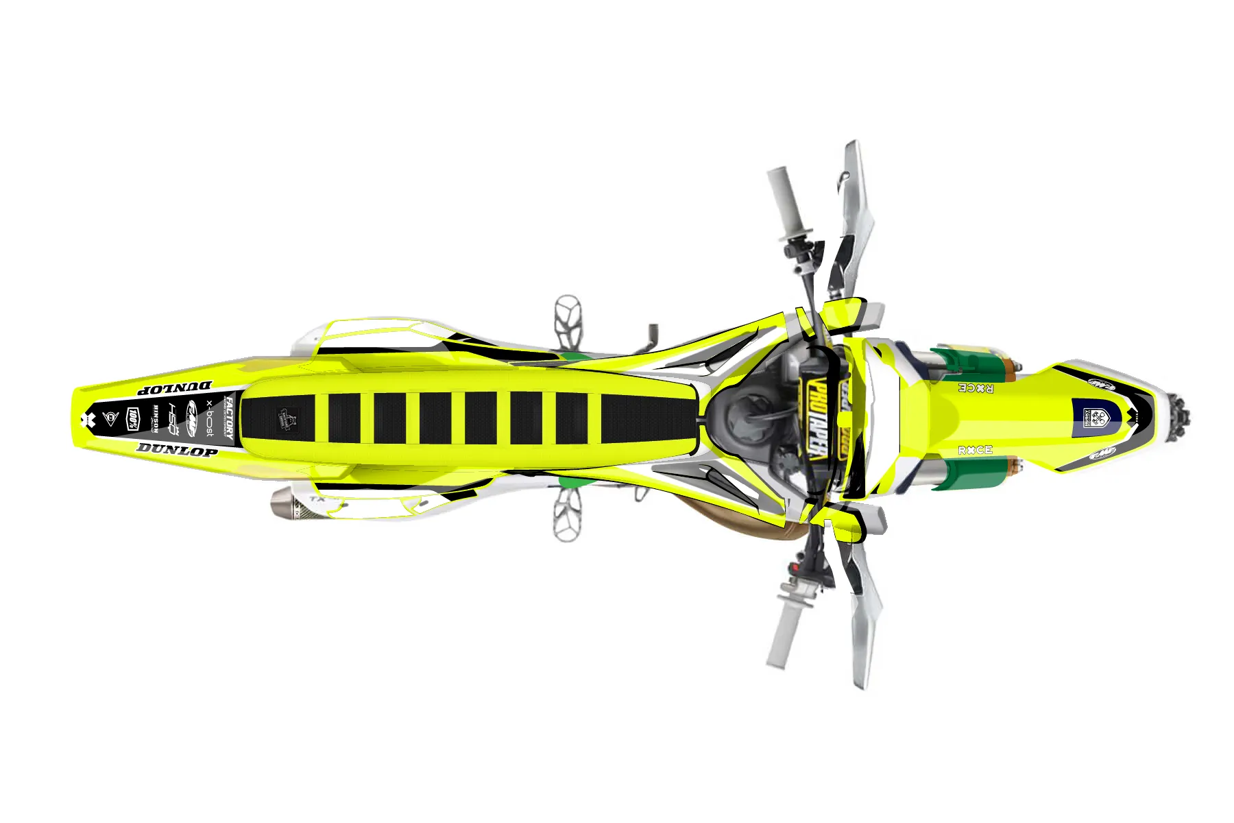 «Brilliant Neon» — готовый комплект графики серии Flow для Husqvarna Enduro Graphic Kit Husqvarna TX 300 2019. В комплекте: графика на бак и боковые облицовки, крылья (переднее и заднее), передний щиток, номерные таблички, защита вилки. Материал: ПВХ-винил 80 мкр с холодной ламинацией 300 мкр, общая толщина 380 мкр; покрытие глянцевое или матовое на выбор. Устойчив к UV-излучению, воде, бензину и мойке высокого давления. Клей акриловый на сольвентной основе — постоянный, для гибких пластиков. На простых поверхностях монтируется без нагрева; для сложных изгибов рекомендуем фен. Этот пресет можно заказать как есть или взять за основу в конструкторе: поменять цвета, добавить стартовый номер и свой бренд. Производство — 3–5 рабочих дней, доставка по России СДЭКом или Почтой, по СНГ — курьерскими службами.