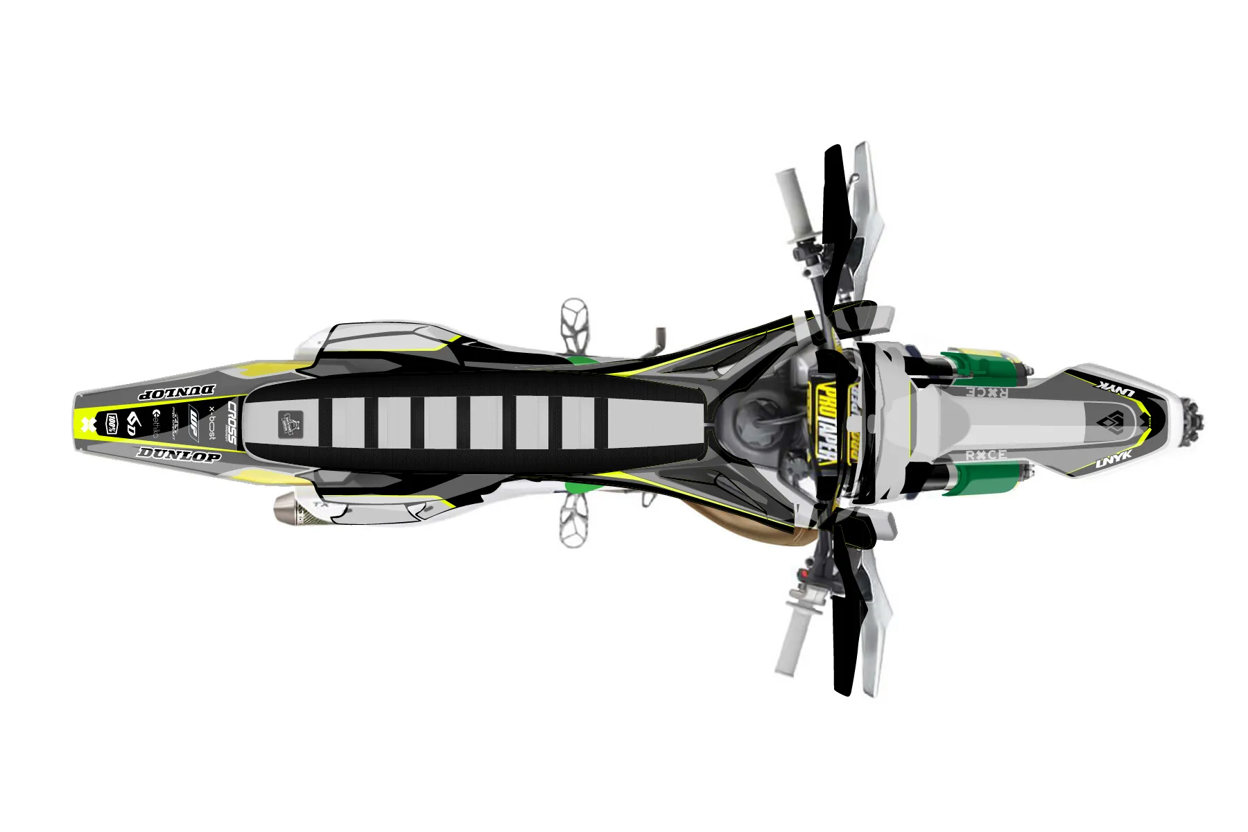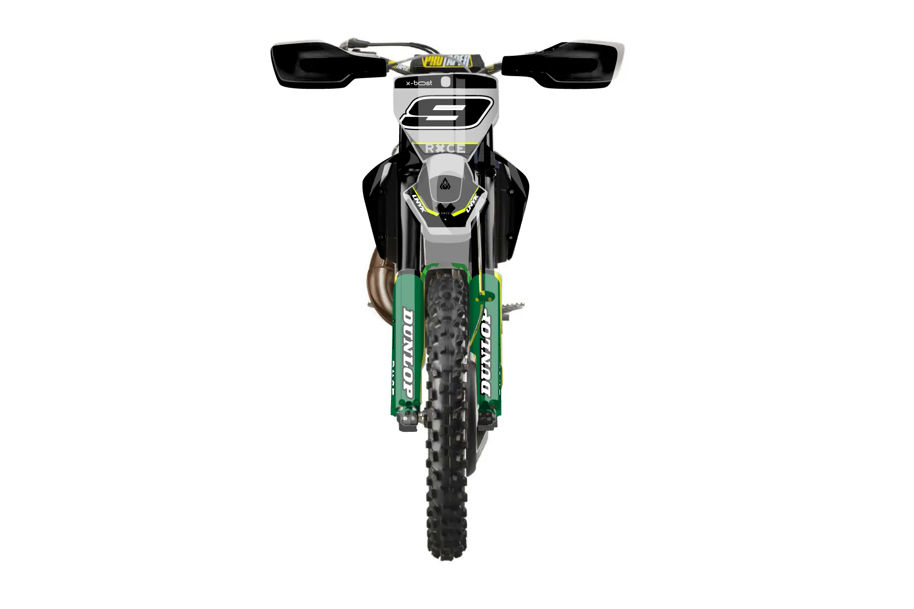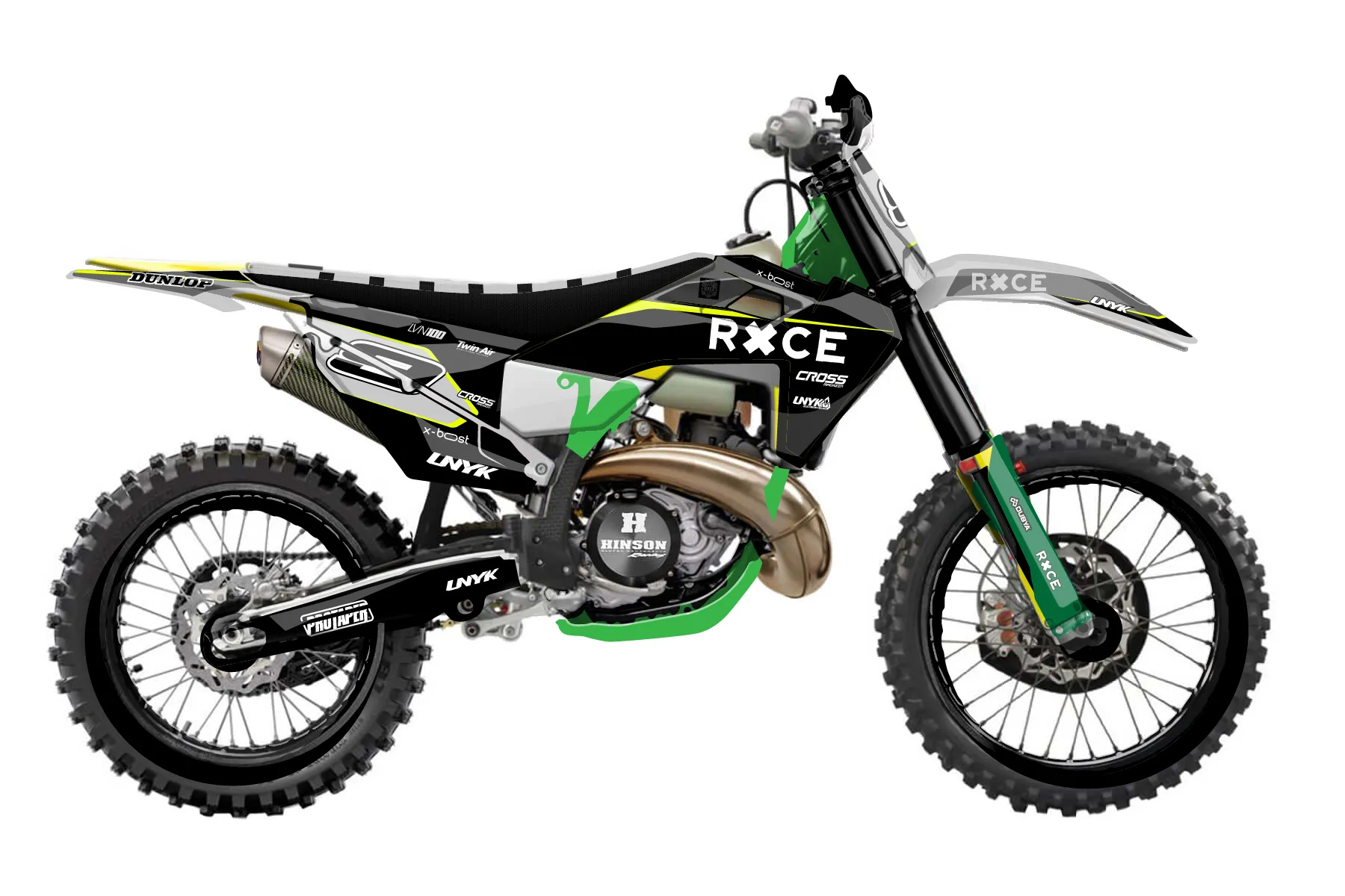 «Cyber Pirate» — готовый комплект графики серии Flow для Husqvarna Enduro Graphic Kit Husqvarna TX 300 2019. В комплекте: графика на бак и боковые облицовки, крылья (переднее и заднее), передний щиток, номерные таблички, защита вилки. Материал: ПВХ-винил 80 мкр с холодной ламинацией 300 мкр, общая толщина 380 мкр; покрытие глянцевое или матовое на выбор. Устойчив к UV-излучению, воде, бензину и мойке высокого давления. Клей акриловый на сольвентной основе — постоянный, для гибких пластиков. На простых поверхностях монтируется без нагрева; для сложных изгибов рекомендуем фен. Этот пресет можно заказать как есть или взять за основу в конструкторе: поменять цвета, добавить стартовый номер и свой бренд. Производство — 3–5 рабочих дней, доставка по России СДЭКом или Почтой, по СНГ — курьерскими службами.