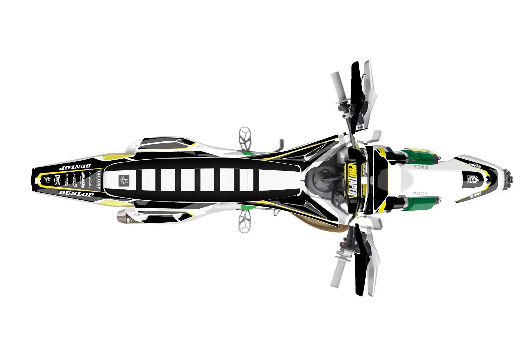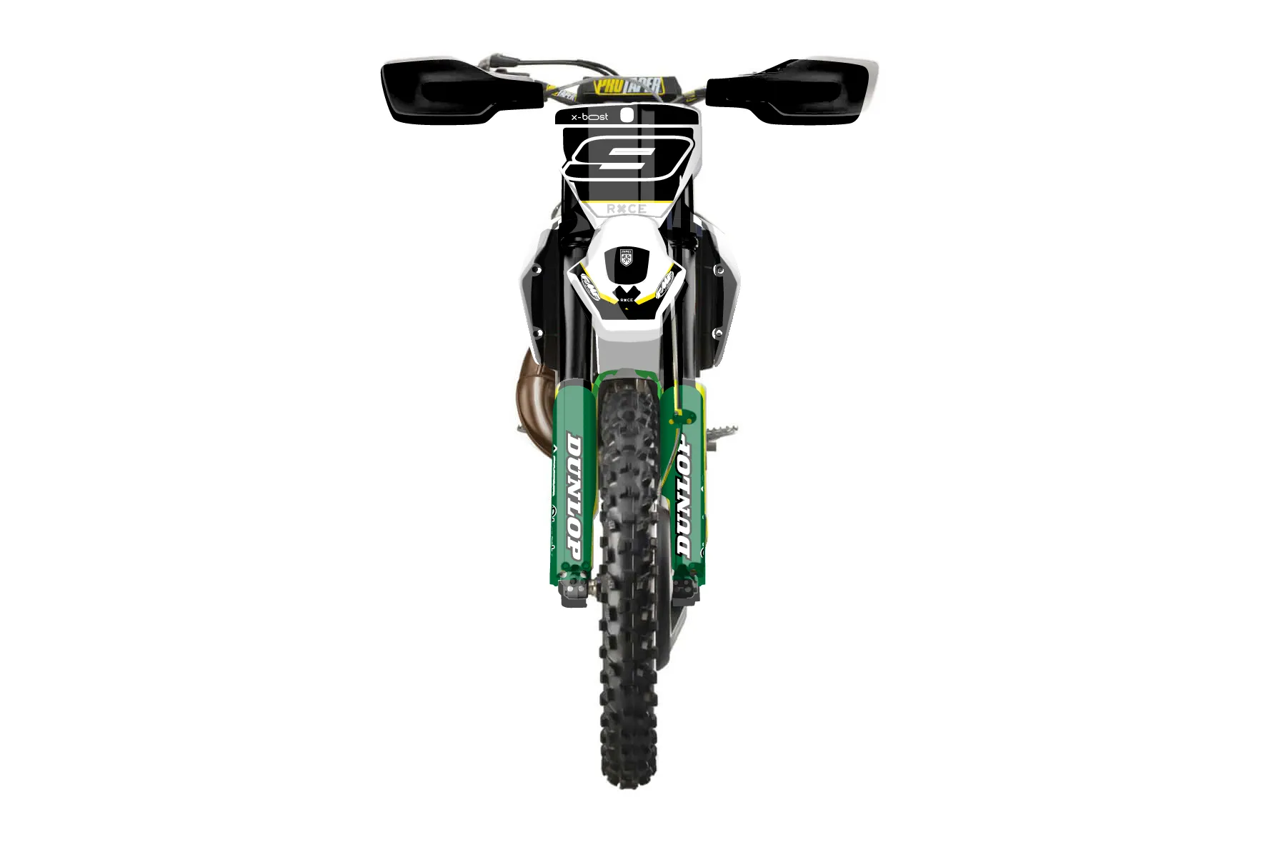 «Ride» — готовый комплект графики серии Flow для Husqvarna Enduro Graphic Kit Husqvarna TX 300 2019. В комплекте: графика на бак и боковые облицовки, крылья (переднее и заднее), передний щиток, номерные таблички, защита вилки. Материал: ПВХ-винил 80 мкр с холодной ламинацией 300 мкр, общая толщина 380 мкр; покрытие глянцевое или матовое на выбор. Устойчив к UV-излучению, воде, бензину и мойке высокого давления. Клей акриловый на сольвентной основе — постоянный, для гибких пластиков. На простых поверхностях монтируется без нагрева; для сложных изгибов рекомендуем фен. Этот пресет можно заказать как есть или взять за основу в конструкторе: поменять цвета, добавить стартовый номер и свой бренд. Производство — 3–5 рабочих дней, доставка по России СДЭКом или Почтой, по СНГ — курьерскими службами.