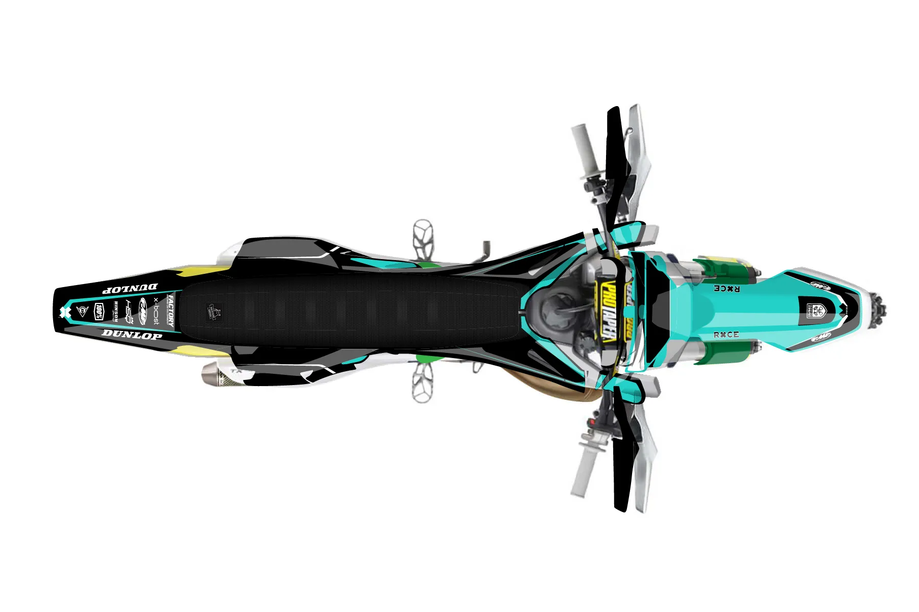 «Vector» — готовый комплект графики серии Flow для Husqvarna Enduro Graphic Kit Husqvarna TX 300 2019. В комплекте: графика на бак и боковые облицовки, крылья (переднее и заднее), передний щиток, номерные таблички, защита вилки. Материал: ПВХ-винил 80 мкр с холодной ламинацией 300 мкр, общая толщина 380 мкр; покрытие глянцевое или матовое на выбор. Устойчив к UV-излучению, воде, бензину и мойке высокого давления. Клей акриловый на сольвентной основе — постоянный, для гибких пластиков. На простых поверхностях монтируется без нагрева; для сложных изгибов рекомендуем фен. Этот пресет можно заказать как есть или взять за основу в конструкторе: поменять цвета, добавить стартовый номер и свой бренд. Производство — 3–5 рабочих дней, доставка по России СДЭКом или Почтой, по СНГ — курьерскими службами.