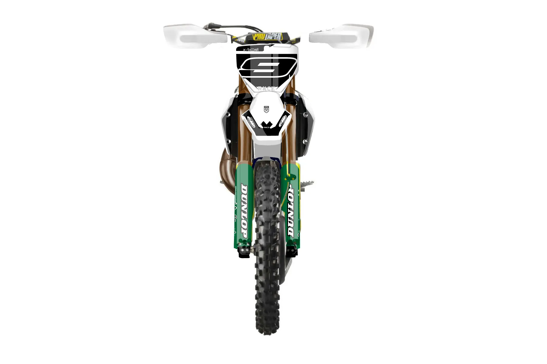 «Answer» — готовый комплект графики серии Maverick для Husqvarna Enduro Graphic Kit Husqvarna TX 300 2019. В комплекте: графика на бак и боковые облицовки, крылья (переднее и заднее), передний щиток, номерные таблички, защита вилки. Материал: ПВХ-винил 80 мкр с холодной ламинацией 300 мкр, общая толщина 380 мкр; покрытие глянцевое или матовое на выбор. Устойчив к UV-излучению, воде, бензину и мойке высокого давления. Клей акриловый на сольвентной основе — постоянный, для гибких пластиков. На простых поверхностях монтируется без нагрева; для сложных изгибов рекомендуем фен. Этот пресет можно заказать как есть или взять за основу в конструкторе: поменять цвета, добавить стартовый номер и свой бренд. Производство — 3–5 рабочих дней, доставка по России СДЭКом или Почтой, по СНГ — курьерскими службами.