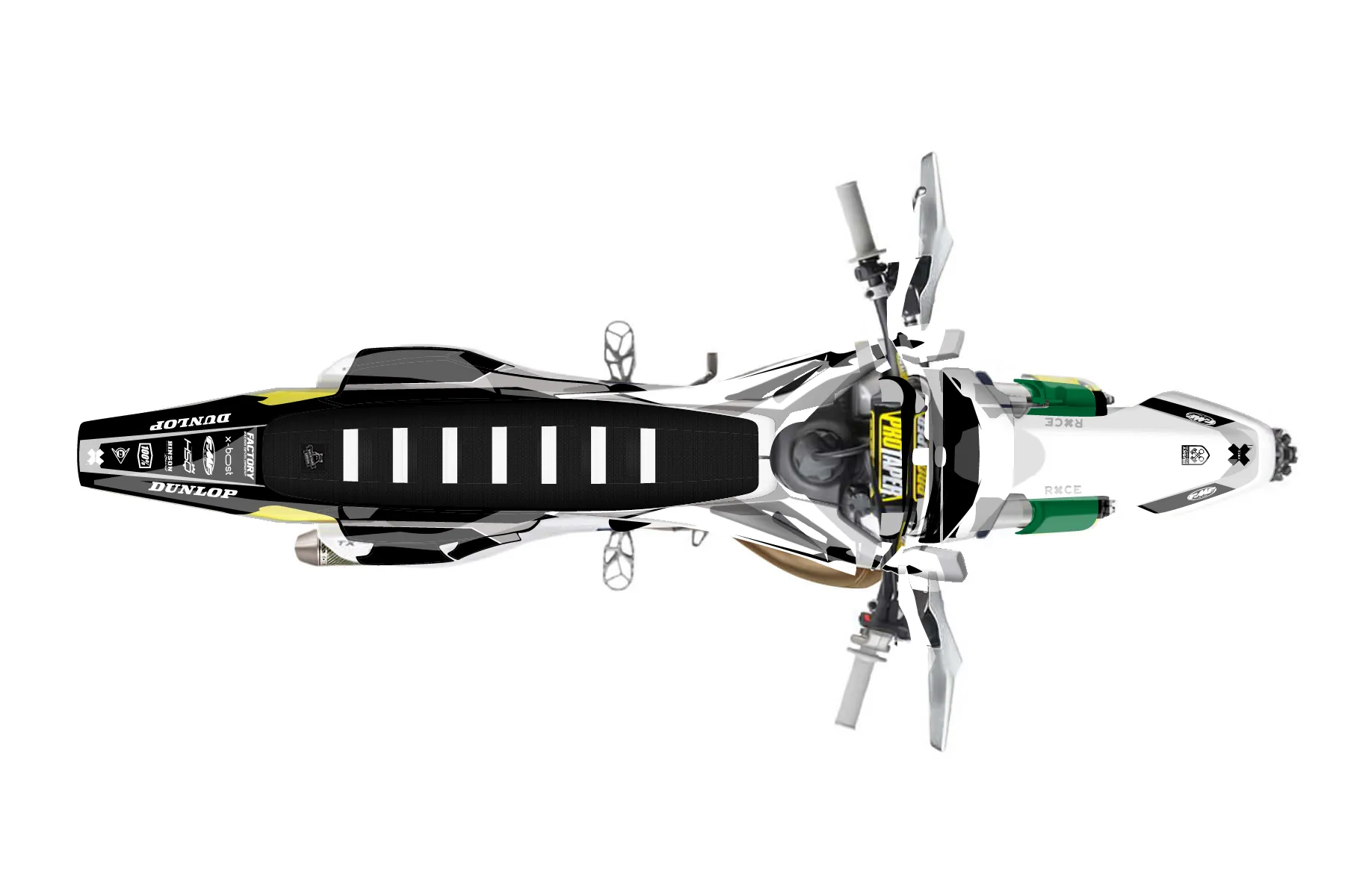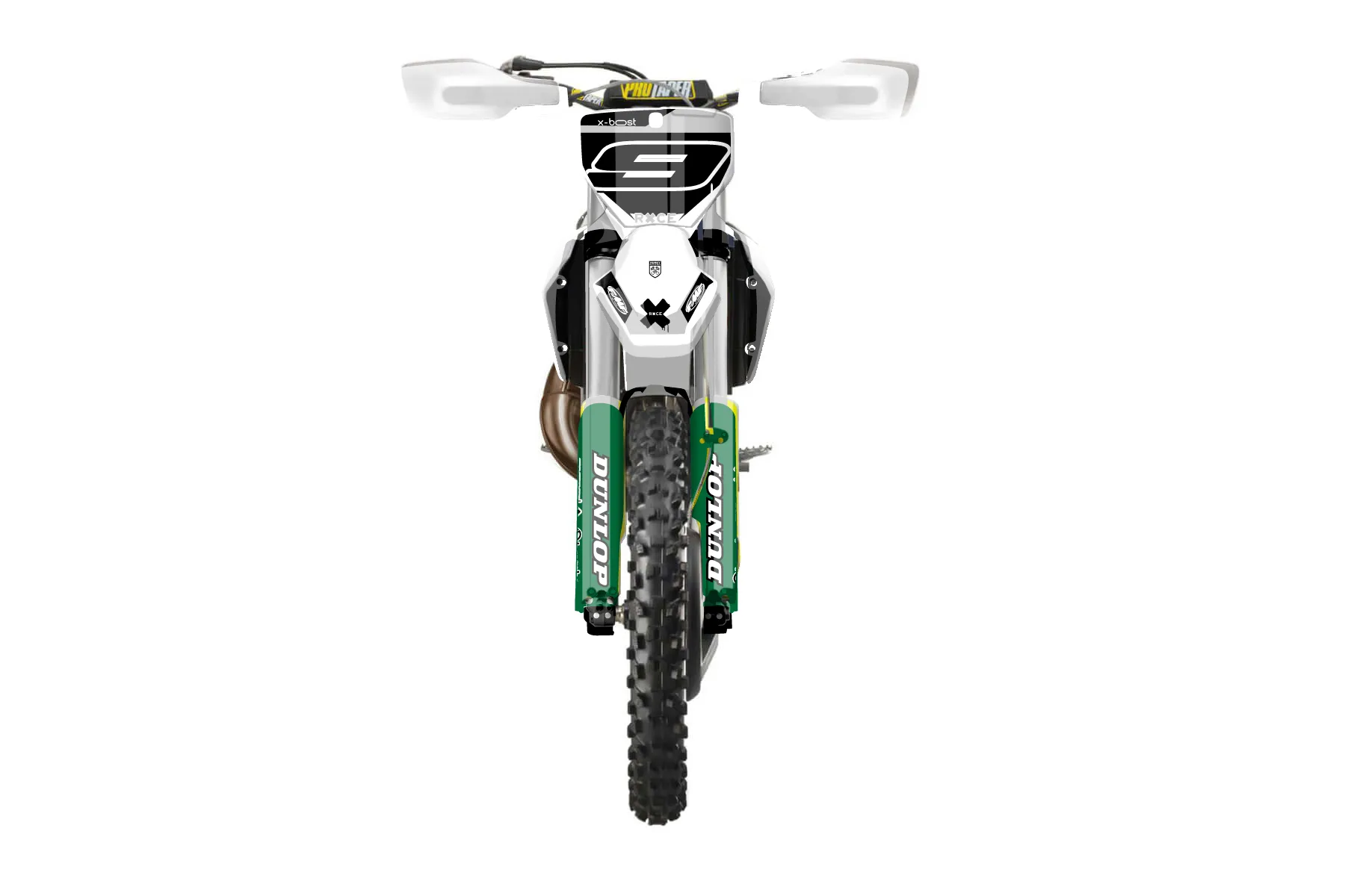 «Husky tx300» — готовый комплект графики серии Maverick для Husqvarna Enduro Graphic Kit Husqvarna TX 300 2019. В комплекте: графика на бак и боковые облицовки, крылья (переднее и заднее), передний щиток, номерные таблички, защита вилки. Материал: ПВХ-винил 80 мкр с холодной ламинацией 300 мкр, общая толщина 380 мкр; покрытие глянцевое или матовое на выбор. Устойчив к UV-излучению, воде, бензину и мойке высокого давления. Клей акриловый на сольвентной основе — постоянный, для гибких пластиков. На простых поверхностях монтируется без нагрева; для сложных изгибов рекомендуем фен. Этот пресет можно заказать как есть или взять за основу в конструкторе: поменять цвета, добавить стартовый номер и свой бренд. Производство — 3–5 рабочих дней, доставка по России СДЭКом или Почтой, по СНГ — курьерскими службами.