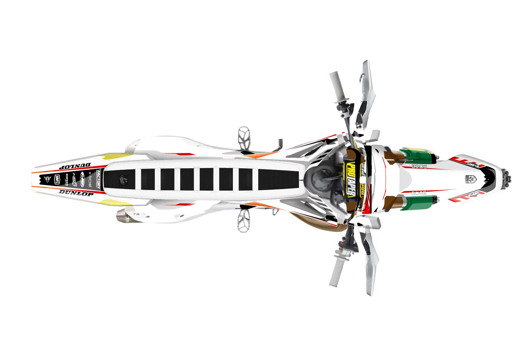 «Invent» — готовый комплект графики серии Maverick для Husqvarna Enduro Graphic Kit Husqvarna TX 300 2019. В комплекте: графика на бак и боковые облицовки, крылья (переднее и заднее), передний щиток, номерные таблички, защита вилки. Материал: ПВХ-винил 80 мкр с холодной ламинацией 300 мкр, общая толщина 380 мкр; покрытие глянцевое или матовое на выбор. Устойчив к UV-излучению, воде, бензину и мойке высокого давления. Клей акриловый на сольвентной основе — постоянный, для гибких пластиков. На простых поверхностях монтируется без нагрева; для сложных изгибов рекомендуем фен. Этот пресет можно заказать как есть или взять за основу в конструкторе: поменять цвета, добавить стартовый номер и свой бренд. Производство — 3–5 рабочих дней, доставка по России СДЭКом или Почтой, по СНГ — курьерскими службами.