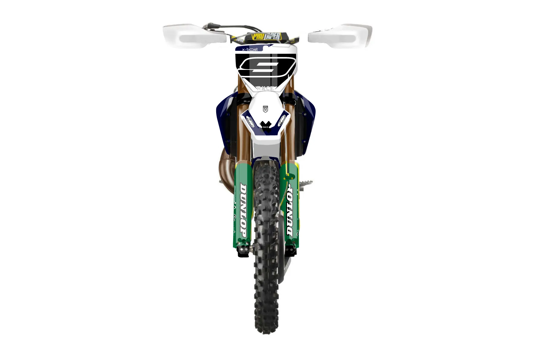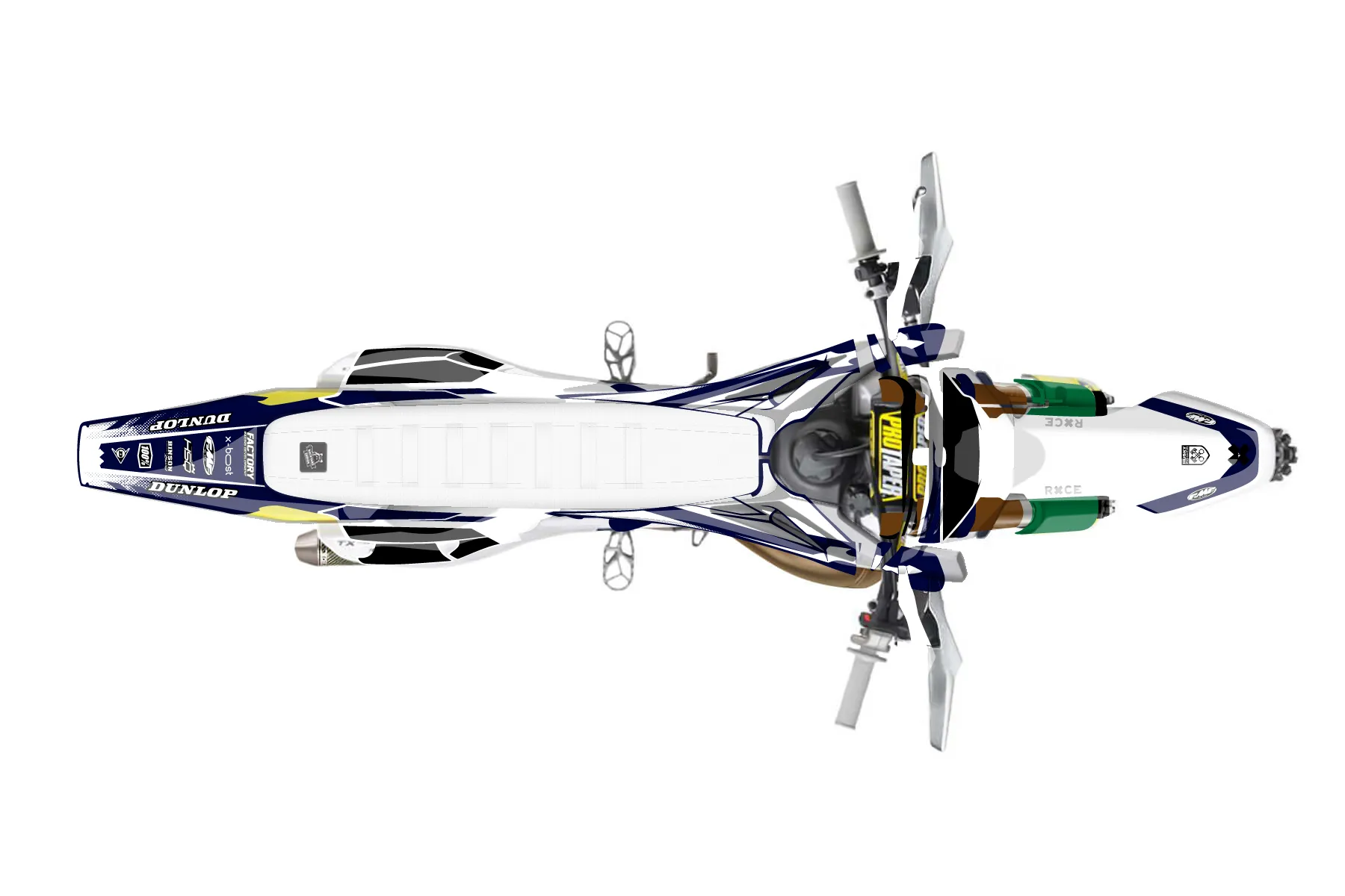 «Myth» — готовый комплект графики серии Maverick для Husqvarna Enduro Graphic Kit Husqvarna TX 300 2019. В комплекте: графика на бак и боковые облицовки, крылья (переднее и заднее), передний щиток, номерные таблички, защита вилки. Материал: ПВХ-винил 80 мкр с холодной ламинацией 300 мкр, общая толщина 380 мкр; покрытие глянцевое или матовое на выбор. Устойчив к UV-излучению, воде, бензину и мойке высокого давления. Клей акриловый на сольвентной основе — постоянный, для гибких пластиков. На простых поверхностях монтируется без нагрева; для сложных изгибов рекомендуем фен. Этот пресет можно заказать как есть или взять за основу в конструкторе: поменять цвета, добавить стартовый номер и свой бренд. Производство — 3–5 рабочих дней, доставка по России СДЭКом или Почтой, по СНГ — курьерскими службами.