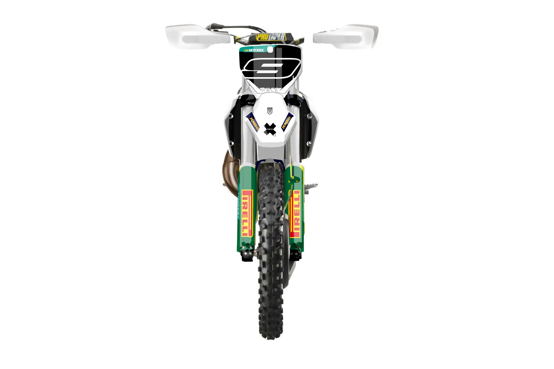 «Thrive» — готовый комплект графики серии Maverick для Husqvarna Enduro Graphic Kit Husqvarna TX 300 2019. В комплекте: графика на бак и боковые облицовки, крылья (переднее и заднее), передний щиток, номерные таблички, защита вилки. Материал: ПВХ-винил 80 мкр с холодной ламинацией 300 мкр, общая толщина 380 мкр; покрытие глянцевое или матовое на выбор. Устойчив к UV-излучению, воде, бензину и мойке высокого давления. Клей акриловый на сольвентной основе — постоянный, для гибких пластиков. На простых поверхностях монтируется без нагрева; для сложных изгибов рекомендуем фен. Этот пресет можно заказать как есть или взять за основу в конструкторе: поменять цвета, добавить стартовый номер и свой бренд. Производство — 3–5 рабочих дней, доставка по России СДЭКом или Почтой, по СНГ — курьерскими службами.