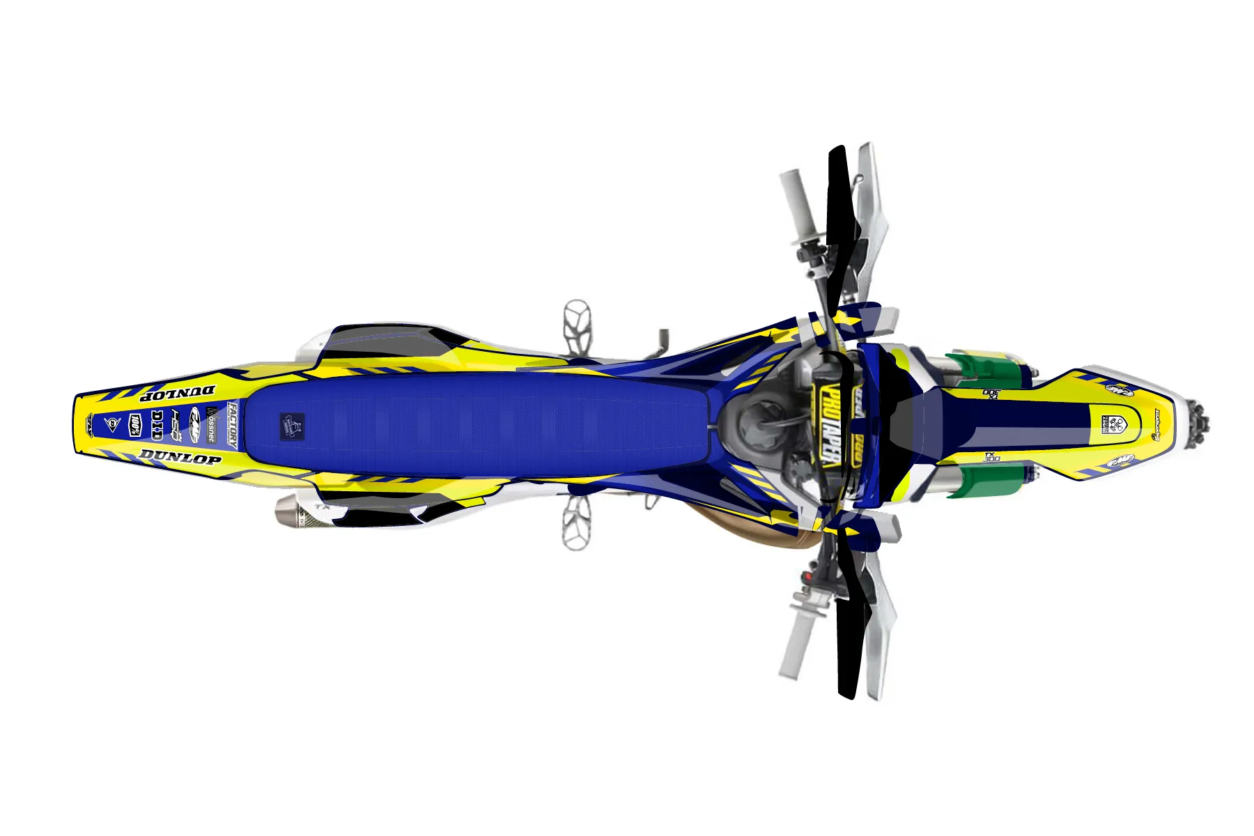 «tx300» — готовый комплект графики серии Maverick для Husqvarna Enduro Graphic Kit Husqvarna TX 300 2019. В комплекте: графика на бак и боковые облицовки, крылья (переднее и заднее), передний щиток, номерные таблички, защита вилки. Материал: ПВХ-винил 80 мкр с холодной ламинацией 300 мкр, общая толщина 380 мкр; покрытие глянцевое или матовое на выбор. Устойчив к UV-излучению, воде, бензину и мойке высокого давления. Клей акриловый на сольвентной основе — постоянный, для гибких пластиков. На простых поверхностях монтируется без нагрева; для сложных изгибов рекомендуем фен. Этот пресет можно заказать как есть или взять за основу в конструкторе: поменять цвета, добавить стартовый номер и свой бренд. Производство — 3–5 рабочих дней, доставка по России СДЭКом или Почтой, по СНГ — курьерскими службами.