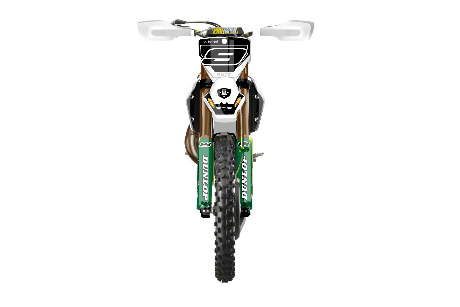 «Ghost» — готовый комплект графики серии Staple для Husqvarna Enduro Graphic Kit Husqvarna TX 300 2019. В комплекте: графика на бак и боковые облицовки, крылья (переднее и заднее), передний щиток, номерные таблички, защита вилки. Материал: ПВХ-винил 80 мкр с холодной ламинацией 300 мкр, общая толщина 380 мкр; покрытие глянцевое или матовое на выбор. Устойчив к UV-излучению, воде, бензину и мойке высокого давления. Клей акриловый на сольвентной основе — постоянный, для гибких пластиков. На простых поверхностях монтируется без нагрева; для сложных изгибов рекомендуем фен. Этот пресет можно заказать как есть или взять за основу в конструкторе: поменять цвета, добавить стартовый номер и свой бренд. Производство — 3–5 рабочих дней, доставка по России СДЭКом или Почтой, по СНГ — курьерскими службами.
