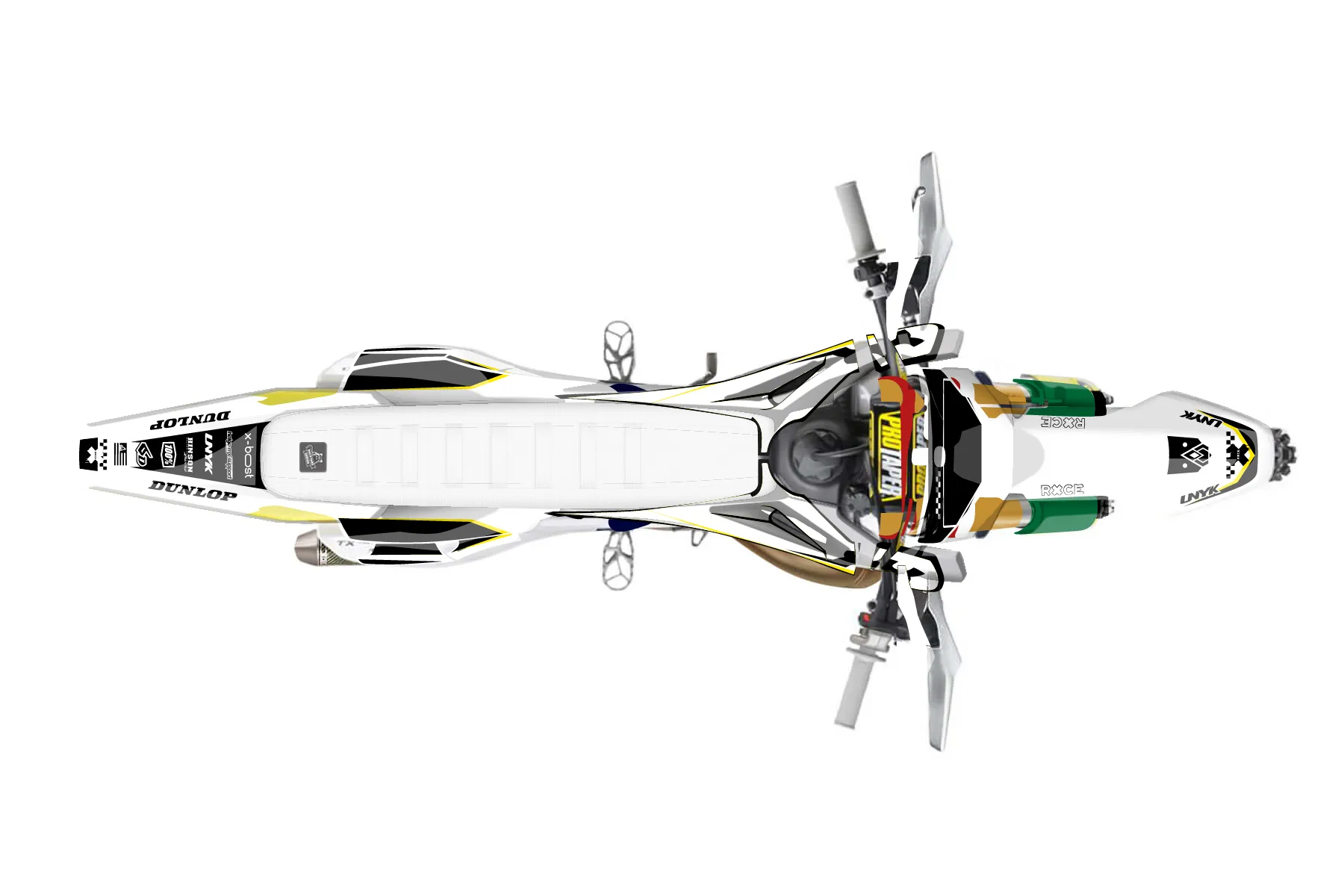 «New Era» — готовый комплект графики серии Staple для Husqvarna Enduro Graphic Kit Husqvarna TX 300 2019. В комплекте: графика на бак и боковые облицовки, крылья (переднее и заднее), передний щиток, номерные таблички, защита вилки. Материал: ПВХ-винил 80 мкр с холодной ламинацией 300 мкр, общая толщина 380 мкр; покрытие глянцевое или матовое на выбор. Устойчив к UV-излучению, воде, бензину и мойке высокого давления. Клей акриловый на сольвентной основе — постоянный, для гибких пластиков. На простых поверхностях монтируется без нагрева; для сложных изгибов рекомендуем фен. Этот пресет можно заказать как есть или взять за основу в конструкторе: поменять цвета, добавить стартовый номер и свой бренд. Производство — 3–5 рабочих дней, доставка по России СДЭКом или Почтой, по СНГ — курьерскими службами.