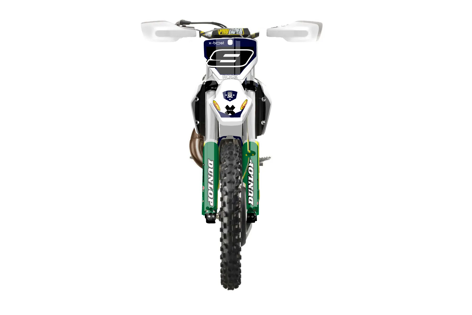«Ride Neon» — готовый комплект графики серии Staple для Husqvarna Enduro Graphic Kit Husqvarna TX 300 2019. В комплекте: графика на бак и боковые облицовки, крылья (переднее и заднее), передний щиток, номерные таблички, защита вилки. Материал: ПВХ-винил 80 мкр с холодной ламинацией 300 мкр, общая толщина 380 мкр; покрытие глянцевое или матовое на выбор. Устойчив к UV-излучению, воде, бензину и мойке высокого давления. Клей акриловый на сольвентной основе — постоянный, для гибких пластиков. На простых поверхностях монтируется без нагрева; для сложных изгибов рекомендуем фен. Этот пресет можно заказать как есть или взять за основу в конструкторе: поменять цвета, добавить стартовый номер и свой бренд. Производство — 3–5 рабочих дней, доставка по России СДЭКом или Почтой, по СНГ — курьерскими службами.