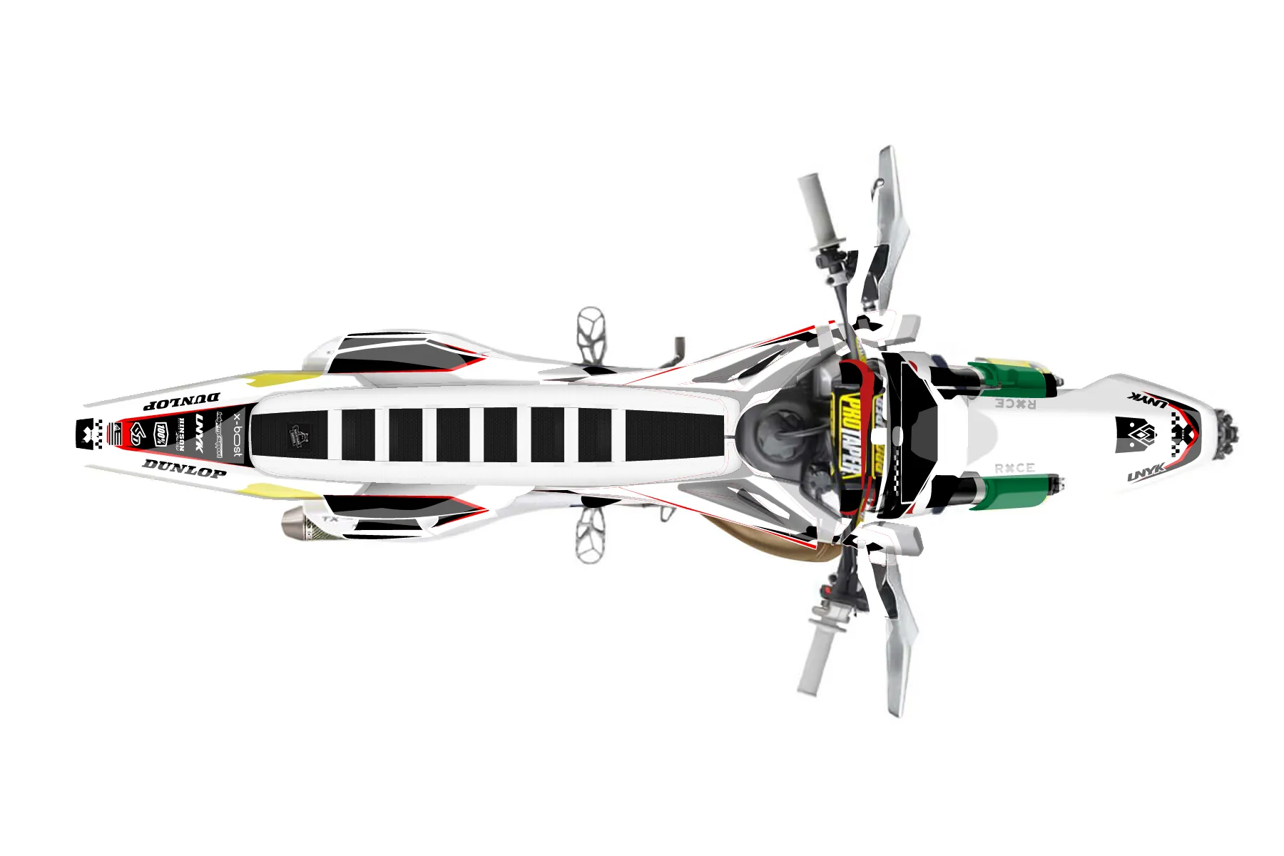 «Spirit» — готовый комплект графики серии Staple для Husqvarna Enduro Graphic Kit Husqvarna TX 300 2019. В комплекте: графика на бак и боковые облицовки, крылья (переднее и заднее), передний щиток, номерные таблички, защита вилки. Материал: ПВХ-винил 80 мкр с холодной ламинацией 300 мкр, общая толщина 380 мкр; покрытие глянцевое или матовое на выбор. Устойчив к UV-излучению, воде, бензину и мойке высокого давления. Клей акриловый на сольвентной основе — постоянный, для гибких пластиков. На простых поверхностях монтируется без нагрева; для сложных изгибов рекомендуем фен. Этот пресет можно заказать как есть или взять за основу в конструкторе: поменять цвета, добавить стартовый номер и свой бренд. Производство — 3–5 рабочих дней, доставка по России СДЭКом или Почтой, по СНГ — курьерскими службами.