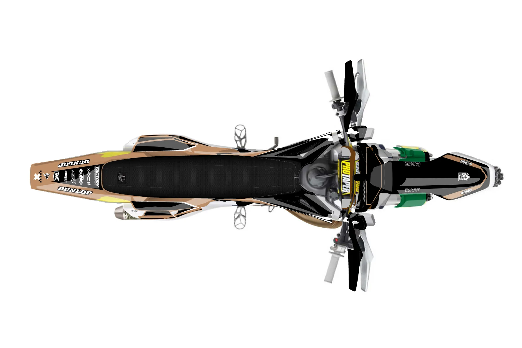 «Trait» — готовый комплект графики серии Staple для Husqvarna Enduro Graphic Kit Husqvarna TX 300 2019. В комплекте: графика на бак и боковые облицовки, крылья (переднее и заднее), передний щиток, номерные таблички, защита вилки. Материал: ПВХ-винил 80 мкр с холодной ламинацией 300 мкр, общая толщина 380 мкр; покрытие глянцевое или матовое на выбор. Устойчив к UV-излучению, воде, бензину и мойке высокого давления. Клей акриловый на сольвентной основе — постоянный, для гибких пластиков. На простых поверхностях монтируется без нагрева; для сложных изгибов рекомендуем фен. Этот пресет можно заказать как есть или взять за основу в конструкторе: поменять цвета, добавить стартовый номер и свой бренд. Производство — 3–5 рабочих дней, доставка по России СДЭКом или Почтой, по СНГ — курьерскими службами.