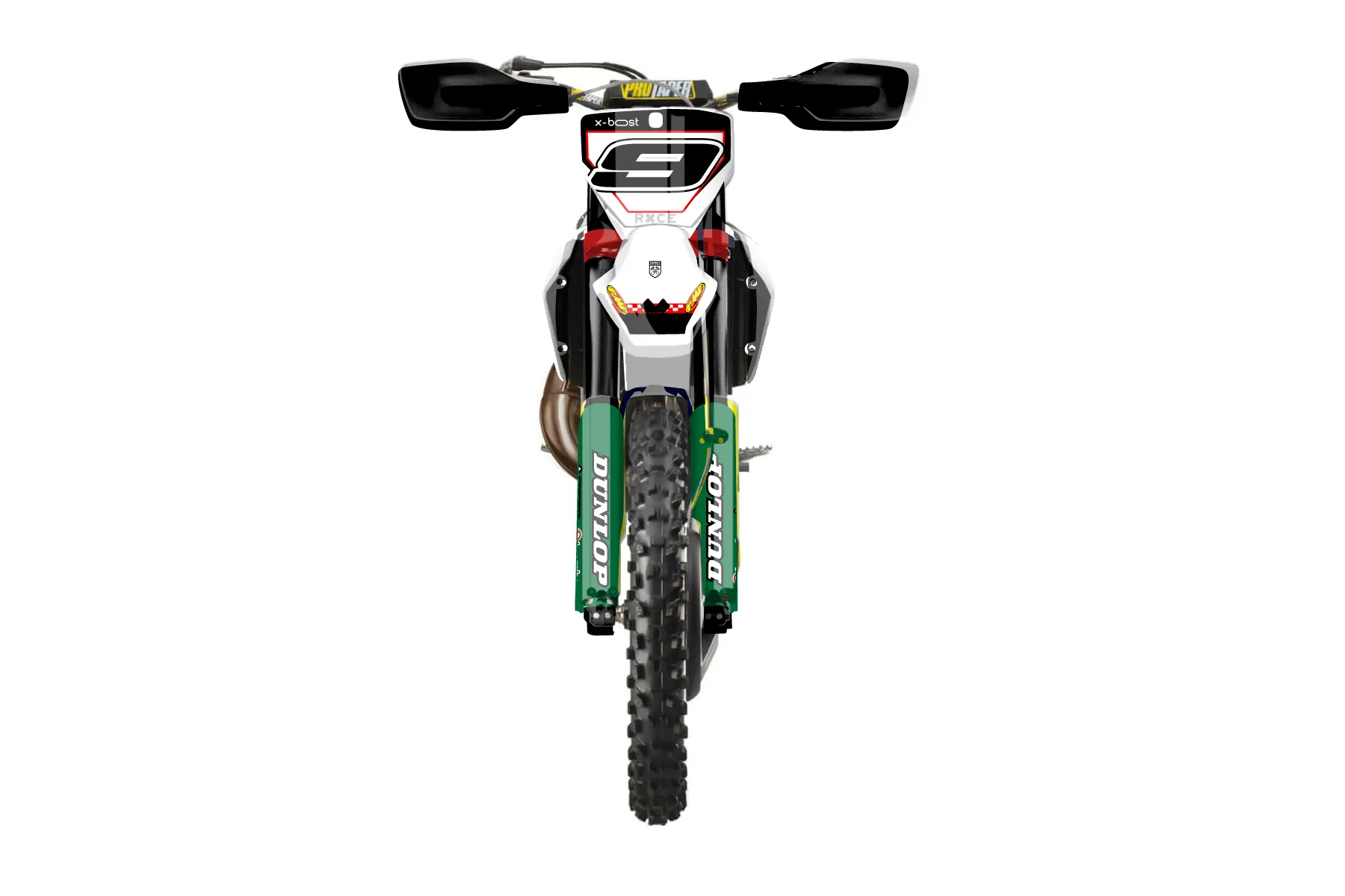 «Vogue» — готовый комплект графики серии Staple для Husqvarna Enduro Graphic Kit Husqvarna TX 300 2019. В комплекте: графика на бак и боковые облицовки, крылья (переднее и заднее), передний щиток, номерные таблички, защита вилки. Материал: ПВХ-винил 80 мкр с холодной ламинацией 300 мкр, общая толщина 380 мкр; покрытие глянцевое или матовое на выбор. Устойчив к UV-излучению, воде, бензину и мойке высокого давления. Клей акриловый на сольвентной основе — постоянный, для гибких пластиков. На простых поверхностях монтируется без нагрева; для сложных изгибов рекомендуем фен. Этот пресет можно заказать как есть или взять за основу в конструкторе: поменять цвета, добавить стартовый номер и свой бренд. Производство — 3–5 рабочих дней, доставка по России СДЭКом или Почтой, по СНГ — курьерскими службами.