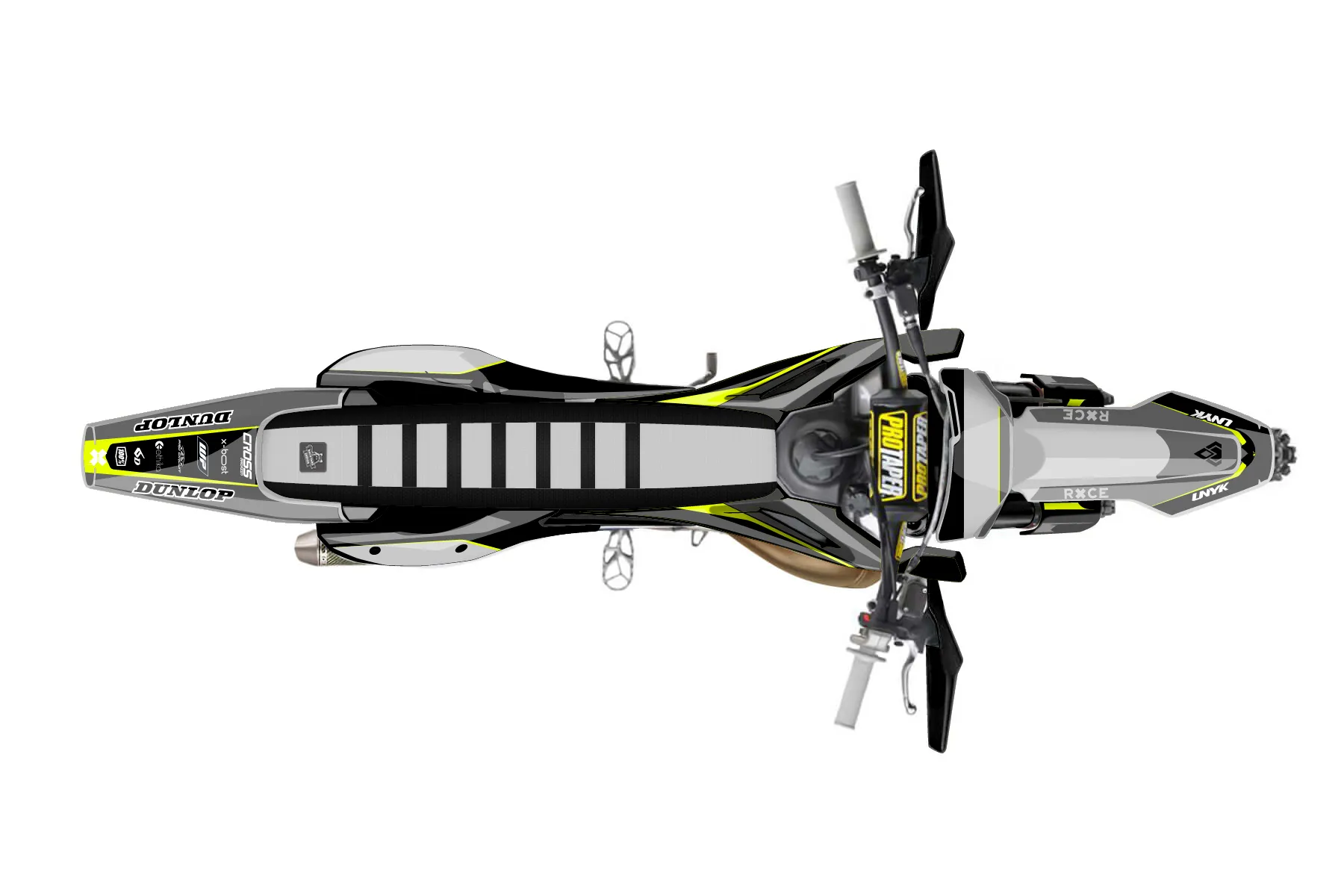 «Cyber Pirate» — готовый комплект графики серии Flow для Husqvarna Enduro Graphic Kit Husqvarna TX 300 2023. В комплекте: графика на бак и боковые облицовки, крылья (переднее и заднее), передний щиток, номерные таблички, защита вилки. Материал: ПВХ-винил 80 мкр с холодной ламинацией 300 мкр, общая толщина 380 мкр; покрытие глянцевое или матовое на выбор. Устойчив к UV-излучению, воде, бензину и мойке высокого давления. Клей акриловый на сольвентной основе — постоянный, для гибких пластиков. На простых поверхностях монтируется без нагрева; для сложных изгибов рекомендуем фен. Этот пресет можно заказать как есть или взять за основу в конструкторе: поменять цвета, добавить стартовый номер и свой бренд. Производство — 3–5 рабочих дней, доставка по России СДЭКом или Почтой, по СНГ — курьерскими службами.