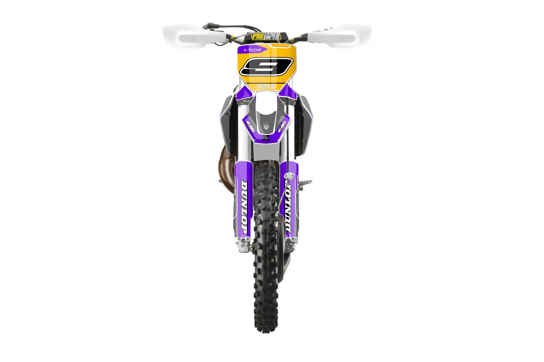 «design one» — готовый комплект графики серии Flow для Husqvarna Enduro Graphic Kit Husqvarna TX 300 2023. В комплекте: графика на бак и боковые облицовки, крылья (переднее и заднее), передний щиток, номерные таблички, защита вилки. Материал: ПВХ-винил 80 мкр с холодной ламинацией 300 мкр, общая толщина 380 мкр; покрытие глянцевое или матовое на выбор. Устойчив к UV-излучению, воде, бензину и мойке высокого давления. Клей акриловый на сольвентной основе — постоянный, для гибких пластиков. На простых поверхностях монтируется без нагрева; для сложных изгибов рекомендуем фен. Этот пресет можно заказать как есть или взять за основу в конструкторе: поменять цвета, добавить стартовый номер и свой бренд. Производство — 3–5 рабочих дней, доставка по России СДЭКом или Почтой, по СНГ — курьерскими службами.