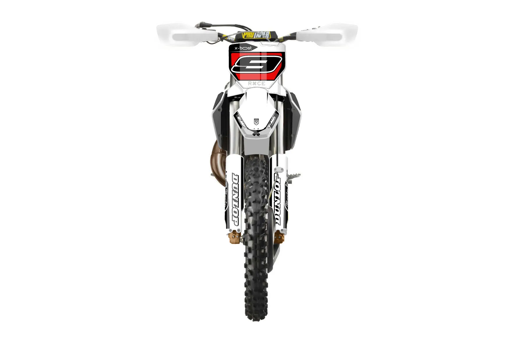 «Husqvarna 1» — готовый комплект графики серии Flow для Husqvarna Enduro Graphic Kit Husqvarna TX 300 2023. В комплекте: графика на бак и боковые облицовки, крылья (переднее и заднее), передний щиток, номерные таблички, защита вилки. Материал: ПВХ-винил 80 мкр с холодной ламинацией 300 мкр, общая толщина 380 мкр; покрытие глянцевое или матовое на выбор. Устойчив к UV-излучению, воде, бензину и мойке высокого давления. Клей акриловый на сольвентной основе — постоянный, для гибких пластиков. На простых поверхностях монтируется без нагрева; для сложных изгибов рекомендуем фен. Этот пресет можно заказать как есть или взять за основу в конструкторе: поменять цвета, добавить стартовый номер и свой бренд. Производство — 3–5 рабочих дней, доставка по России СДЭКом или Почтой, по СНГ — курьерскими службами.