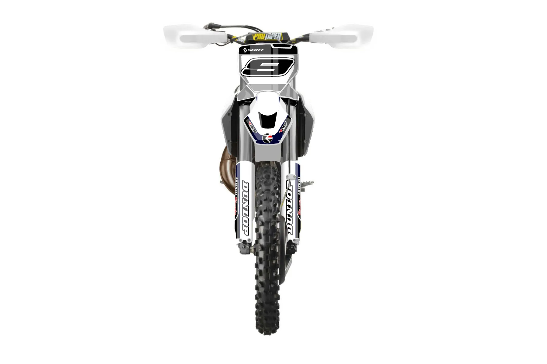 «white and blue» — готовый комплект графики серии Flow для Husqvarna Enduro Graphic Kit Husqvarna TX 300 2023. В комплекте: графика на бак и боковые облицовки, крылья (переднее и заднее), передний щиток, номерные таблички, защита вилки. Материал: ПВХ-винил 80 мкр с холодной ламинацией 300 мкр, общая толщина 380 мкр; покрытие глянцевое или матовое на выбор. Устойчив к UV-излучению, воде, бензину и мойке высокого давления. Клей акриловый на сольвентной основе — постоянный, для гибких пластиков. На простых поверхностях монтируется без нагрева; для сложных изгибов рекомендуем фен. Этот пресет можно заказать как есть или взять за основу в конструкторе: поменять цвета, добавить стартовый номер и свой бренд. Производство — 3–5 рабочих дней, доставка по России СДЭКом или Почтой, по СНГ — курьерскими службами.