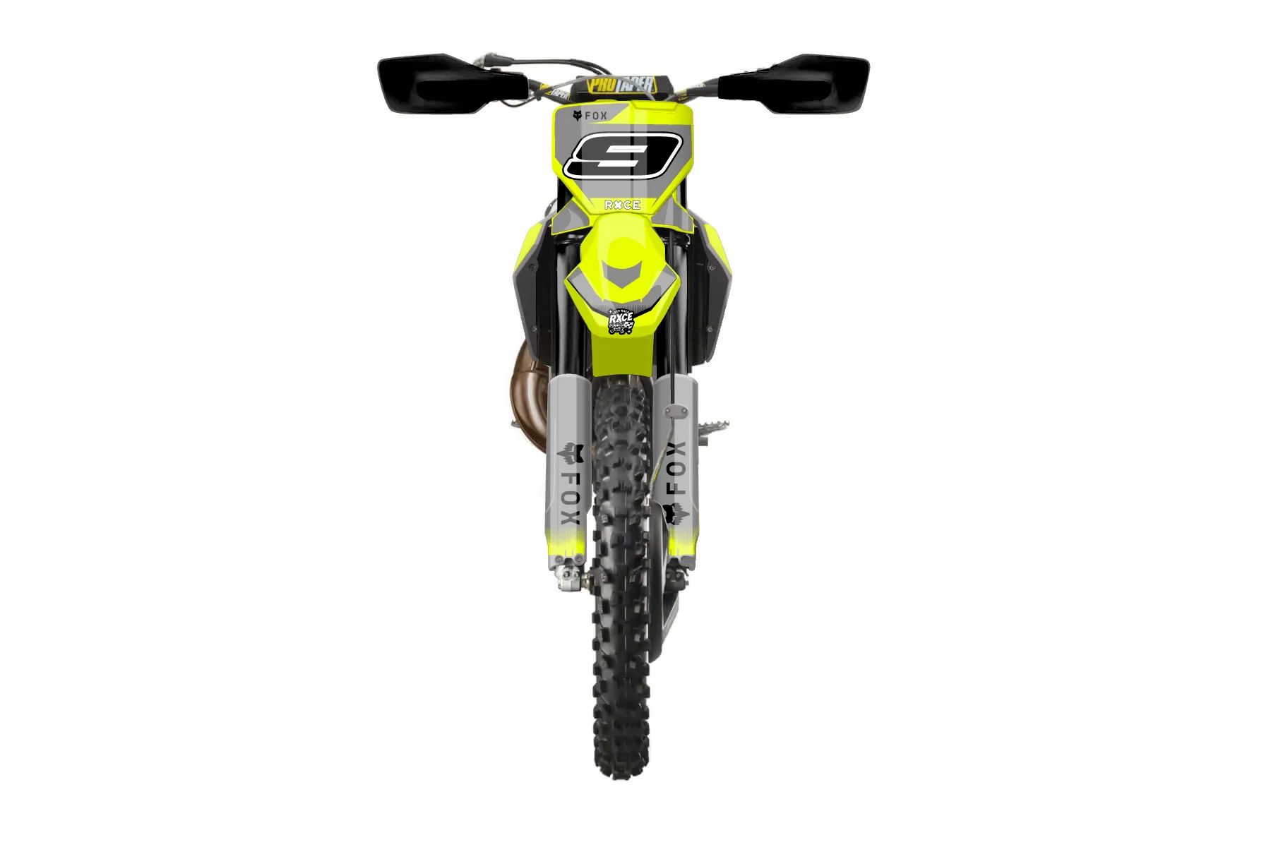 «Daze Fluo» — готовый комплект графики серии Fusion для Husqvarna Enduro Graphic Kit Husqvarna TX 300 2023. В комплекте: графика на бак и боковые облицовки, крылья (переднее и заднее), передний щиток, номерные таблички, защита вилки. Материал: ПВХ-винил 80 мкр с холодной ламинацией 300 мкр, общая толщина 380 мкр; покрытие глянцевое или матовое на выбор. Устойчив к UV-излучению, воде, бензину и мойке высокого давления. Клей акриловый на сольвентной основе — постоянный, для гибких пластиков. На простых поверхностях монтируется без нагрева; для сложных изгибов рекомендуем фен. Этот пресет можно заказать как есть или взять за основу в конструкторе: поменять цвета, добавить стартовый номер и свой бренд. Производство — 3–5 рабочих дней, доставка по России СДЭКом или Почтой, по СНГ — курьерскими службами.