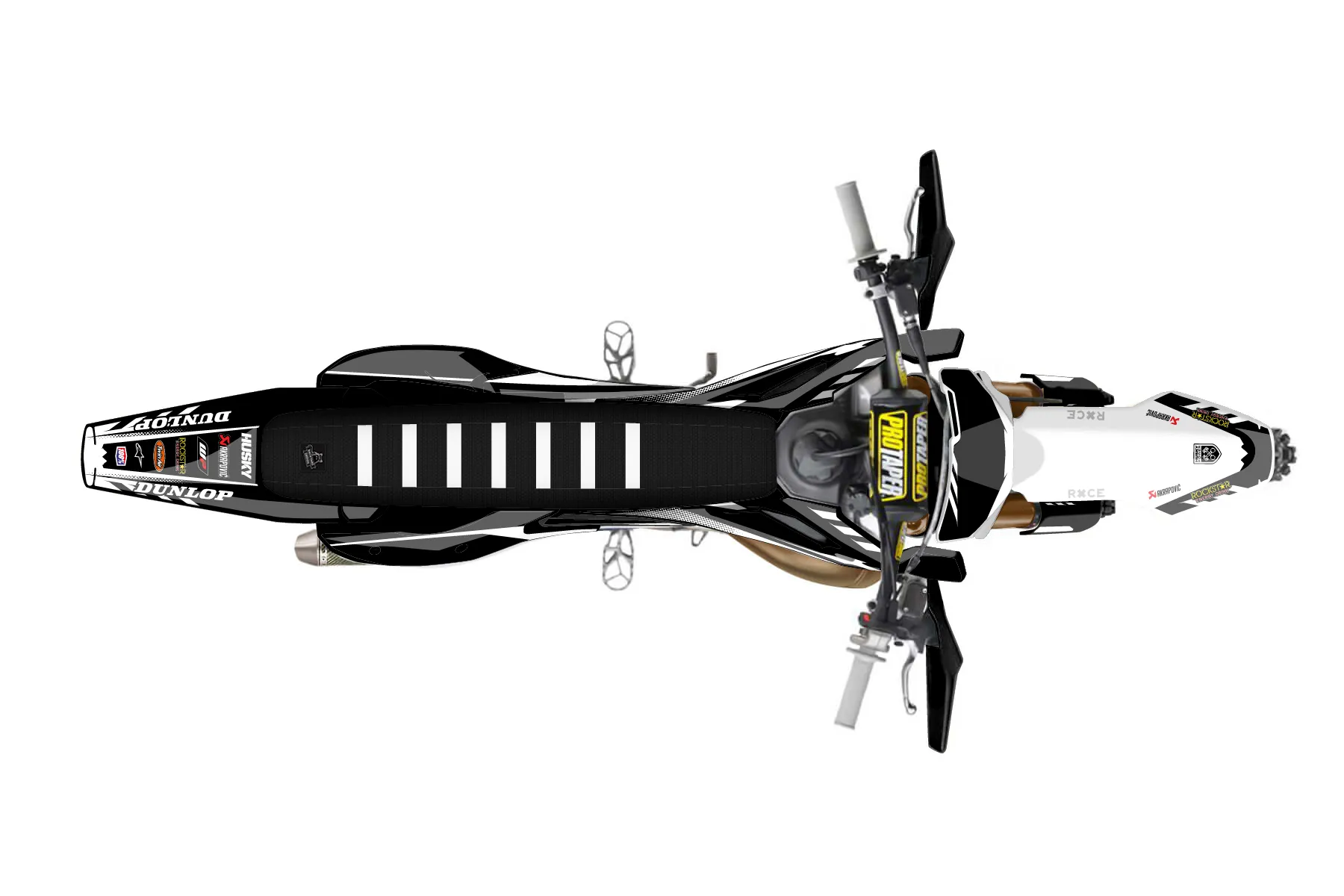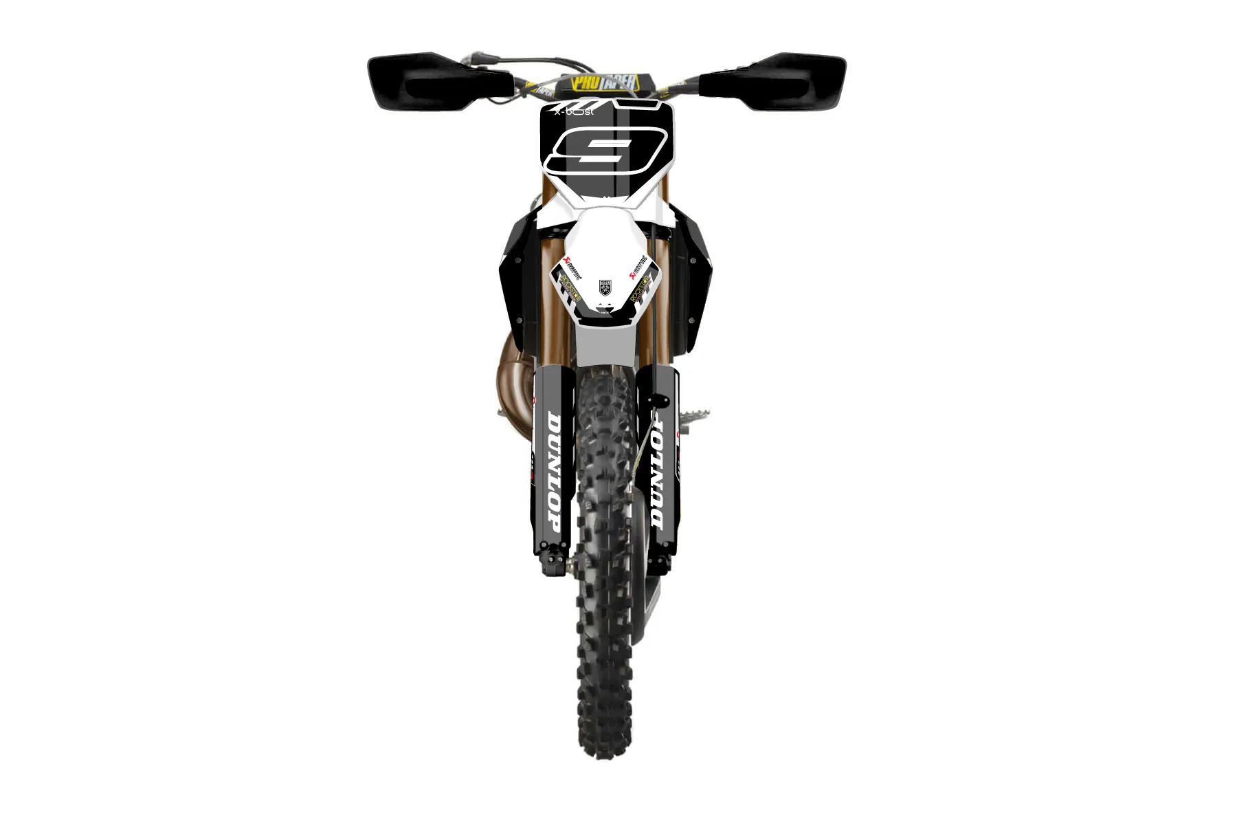 «Bang» — готовый комплект графики серии Maverick для Husqvarna Enduro Graphic Kit Husqvarna TX 300 2023. В комплекте: графика на бак и боковые облицовки, крылья (переднее и заднее), передний щиток, номерные таблички, защита вилки. Материал: ПВХ-винил 80 мкр с холодной ламинацией 300 мкр, общая толщина 380 мкр; покрытие глянцевое или матовое на выбор. Устойчив к UV-излучению, воде, бензину и мойке высокого давления. Клей акриловый на сольвентной основе — постоянный, для гибких пластиков. На простых поверхностях монтируется без нагрева; для сложных изгибов рекомендуем фен. Этот пресет можно заказать как есть или взять за основу в конструкторе: поменять цвета, добавить стартовый номер и свой бренд. Производство — 3–5 рабочих дней, доставка по России СДЭКом или Почтой, по СНГ — курьерскими службами.