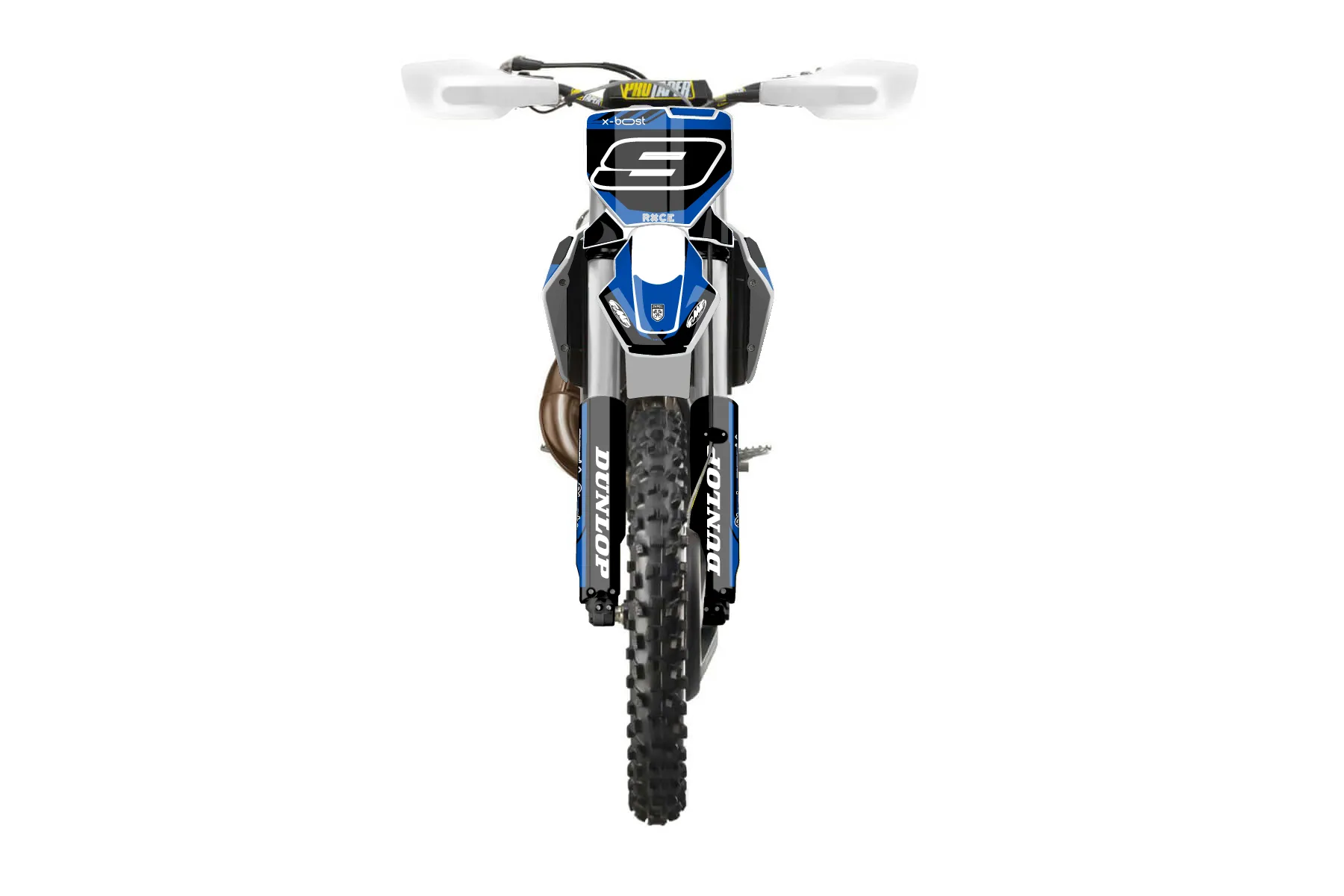 «CustomDesign2» — готовый комплект графики серии Maverick для Husqvarna Enduro Graphic Kit Husqvarna TX 300 2023. В комплекте: графика на бак и боковые облицовки, крылья (переднее и заднее), передний щиток, номерные таблички, защита вилки. Материал: ПВХ-винил 80 мкр с холодной ламинацией 300 мкр, общая толщина 380 мкр; покрытие глянцевое или матовое на выбор. Устойчив к UV-излучению, воде, бензину и мойке высокого давления. Клей акриловый на сольвентной основе — постоянный, для гибких пластиков. На простых поверхностях монтируется без нагрева; для сложных изгибов рекомендуем фен. Этот пресет можно заказать как есть или взять за основу в конструкторе: поменять цвета, добавить стартовый номер и свой бренд. Производство — 3–5 рабочих дней, доставка по России СДЭКом или Почтой, по СНГ — курьерскими службами.