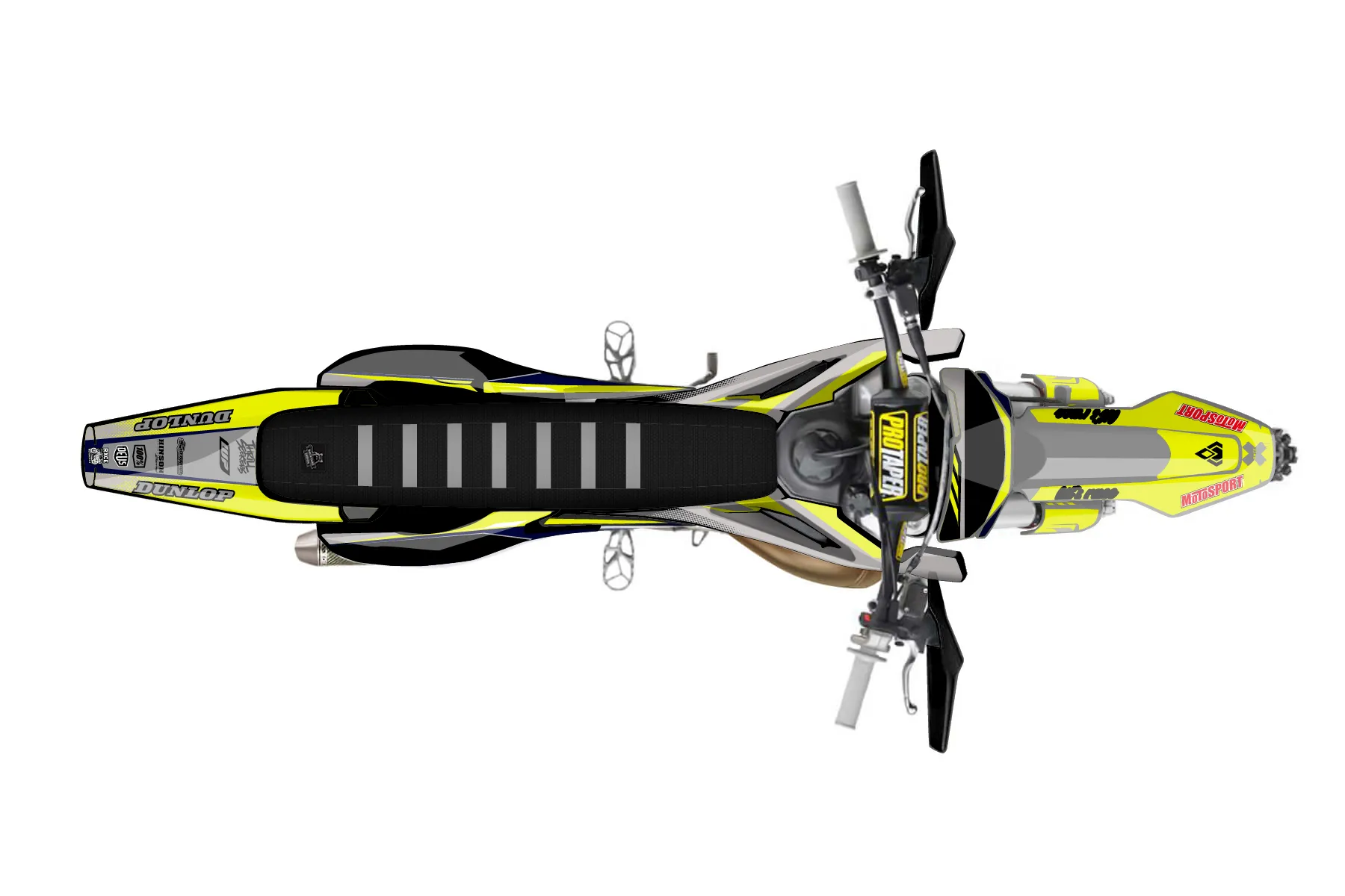 «Husky FX300» — готовый комплект графики серии Maverick для Husqvarna Enduro Graphic Kit Husqvarna TX 300 2023. В комплекте: графика на бак и боковые облицовки, крылья (переднее и заднее), передний щиток, номерные таблички, защита вилки. Материал: ПВХ-винил 80 мкр с холодной ламинацией 300 мкр, общая толщина 380 мкр; покрытие глянцевое или матовое на выбор. Устойчив к UV-излучению, воде, бензину и мойке высокого давления. Клей акриловый на сольвентной основе — постоянный, для гибких пластиков. На простых поверхностях монтируется без нагрева; для сложных изгибов рекомендуем фен. Этот пресет можно заказать как есть или взять за основу в конструкторе: поменять цвета, добавить стартовый номер и свой бренд. Производство — 3–5 рабочих дней, доставка по России СДЭКом или Почтой, по СНГ — курьерскими службами.