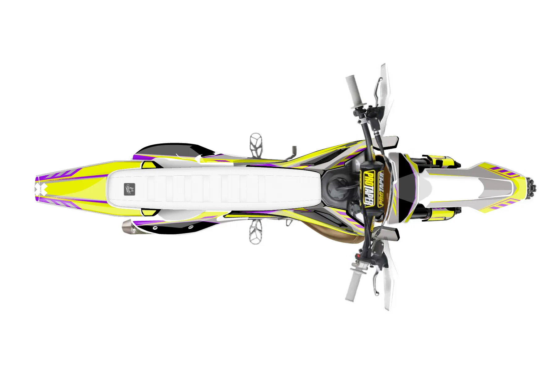 «Purp Husq» — готовый комплект графики серии Maverick для Husqvarna Enduro Graphic Kit Husqvarna TX 300 2023. В комплекте: графика на бак и боковые облицовки, крылья (переднее и заднее), передний щиток, номерные таблички, защита вилки. Материал: ПВХ-винил 80 мкр с холодной ламинацией 300 мкр, общая толщина 380 мкр; покрытие глянцевое или матовое на выбор. Устойчив к UV-излучению, воде, бензину и мойке высокого давления. Клей акриловый на сольвентной основе — постоянный, для гибких пластиков. На простых поверхностях монтируется без нагрева; для сложных изгибов рекомендуем фен. Этот пресет можно заказать как есть или взять за основу в конструкторе: поменять цвета, добавить стартовый номер и свой бренд. Производство — 3–5 рабочих дней, доставка по России СДЭКом или Почтой, по СНГ — курьерскими службами.