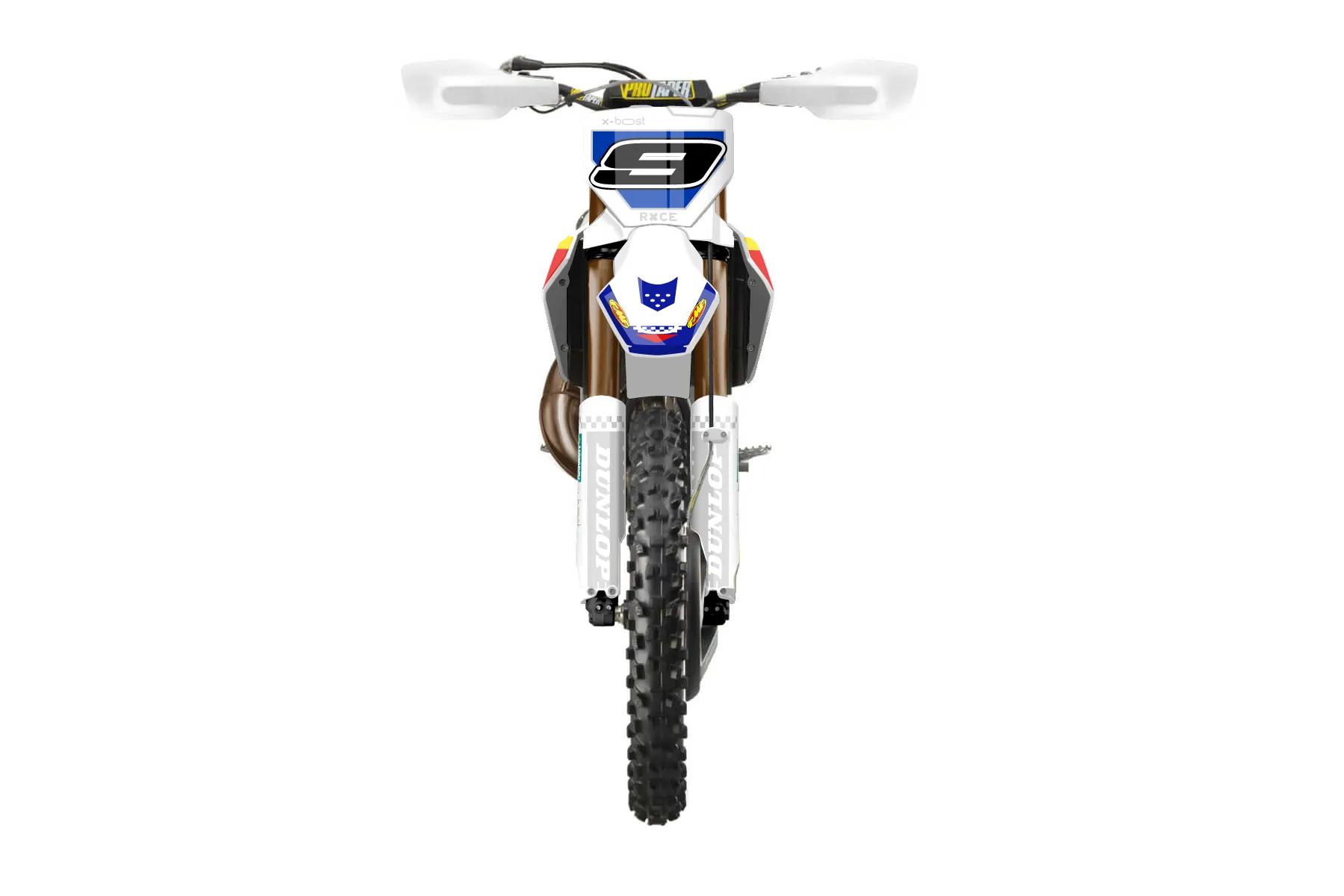 «CustomDesign TX 300» — готовый комплект графики серии Staple для Husqvarna Enduro Graphic Kit Husqvarna TX 300 2023. В комплекте: графика на бак и боковые облицовки, крылья (переднее и заднее), передний щиток, номерные таблички, защита вилки. Материал: ПВХ-винил 80 мкр с холодной ламинацией 300 мкр, общая толщина 380 мкр; покрытие глянцевое или матовое на выбор. Устойчив к UV-излучению, воде, бензину и мойке высокого давления. Клей акриловый на сольвентной основе — постоянный, для гибких пластиков. На простых поверхностях монтируется без нагрева; для сложных изгибов рекомендуем фен. Этот пресет можно заказать как есть или взять за основу в конструкторе: поменять цвета, добавить стартовый номер и свой бренд. Производство — 3–5 рабочих дней, доставка по России СДЭКом или Почтой, по СНГ — курьерскими службами.