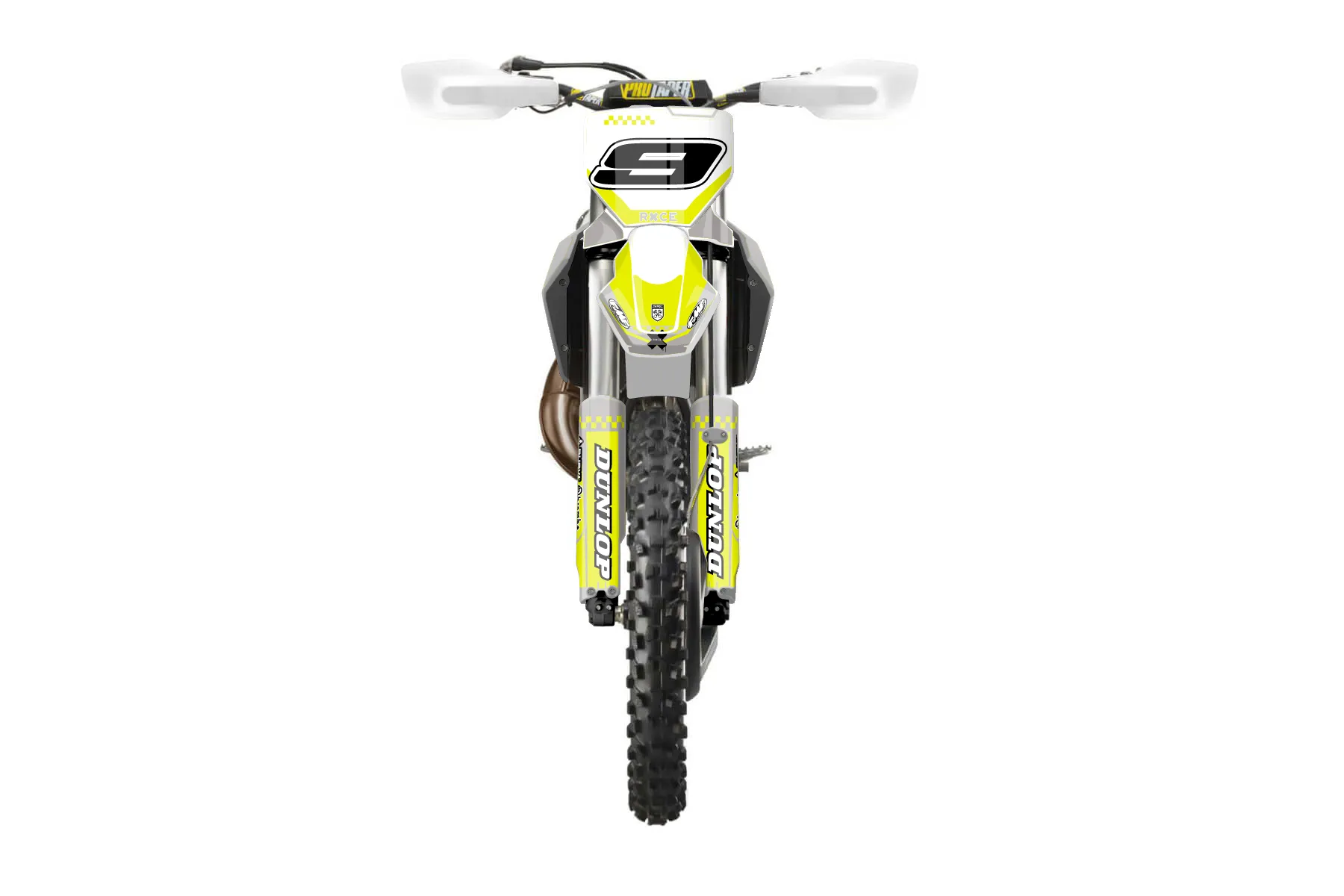 «Husky tx300» — готовый комплект графики серии Staple для Husqvarna Enduro Graphic Kit Husqvarna TX 300 2023. В комплекте: графика на бак и боковые облицовки, крылья (переднее и заднее), передний щиток, номерные таблички, защита вилки. Материал: ПВХ-винил 80 мкр с холодной ламинацией 300 мкр, общая толщина 380 мкр; покрытие глянцевое или матовое на выбор. Устойчив к UV-излучению, воде, бензину и мойке высокого давления. Клей акриловый на сольвентной основе — постоянный, для гибких пластиков. На простых поверхностях монтируется без нагрева; для сложных изгибов рекомендуем фен. Этот пресет можно заказать как есть или взять за основу в конструкторе: поменять цвета, добавить стартовый номер и свой бренд. Производство — 3–5 рабочих дней, доставка по России СДЭКом или Почтой, по СНГ — курьерскими службами.