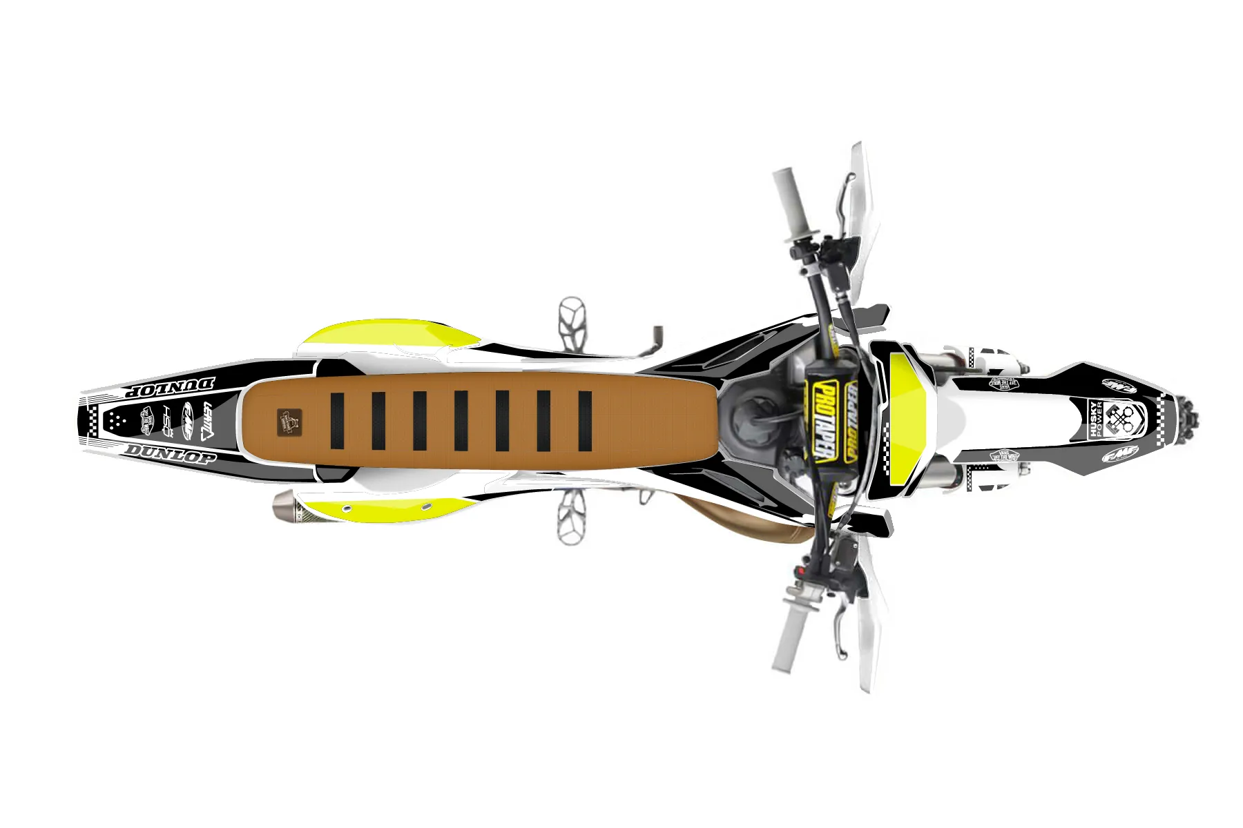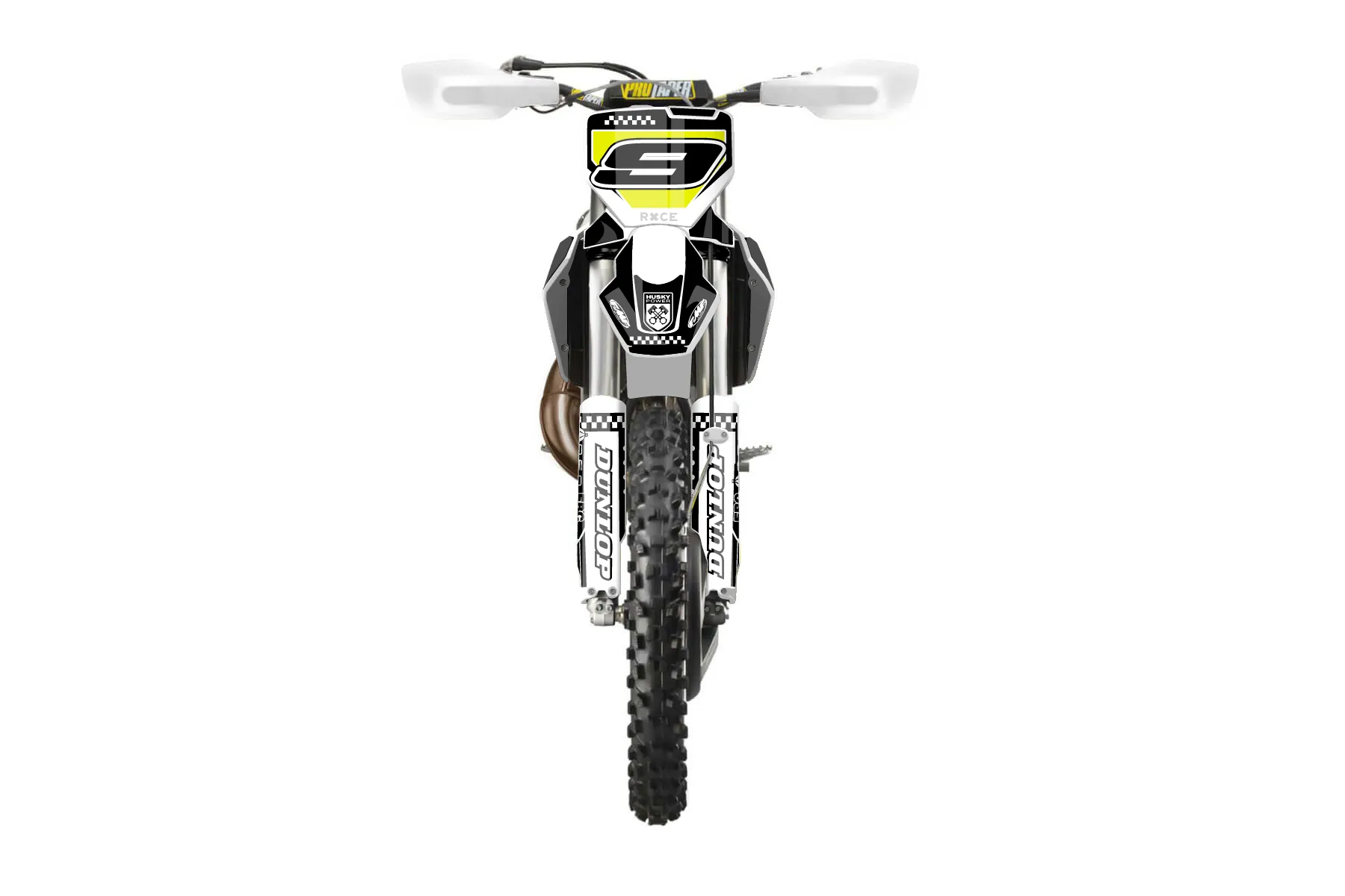 «tecate yellow» — готовый комплект графики серии Staple для Husqvarna Enduro Graphic Kit Husqvarna TX 300 2023. В комплекте: графика на бак и боковые облицовки, крылья (переднее и заднее), передний щиток, номерные таблички, защита вилки. Материал: ПВХ-винил 80 мкр с холодной ламинацией 300 мкр, общая толщина 380 мкр; покрытие глянцевое или матовое на выбор. Устойчив к UV-излучению, воде, бензину и мойке высокого давления. Клей акриловый на сольвентной основе — постоянный, для гибких пластиков. На простых поверхностях монтируется без нагрева; для сложных изгибов рекомендуем фен. Этот пресет можно заказать как есть или взять за основу в конструкторе: поменять цвета, добавить стартовый номер и свой бренд. Производство — 3–5 рабочих дней, доставка по России СДЭКом или Почтой, по СНГ — курьерскими службами.