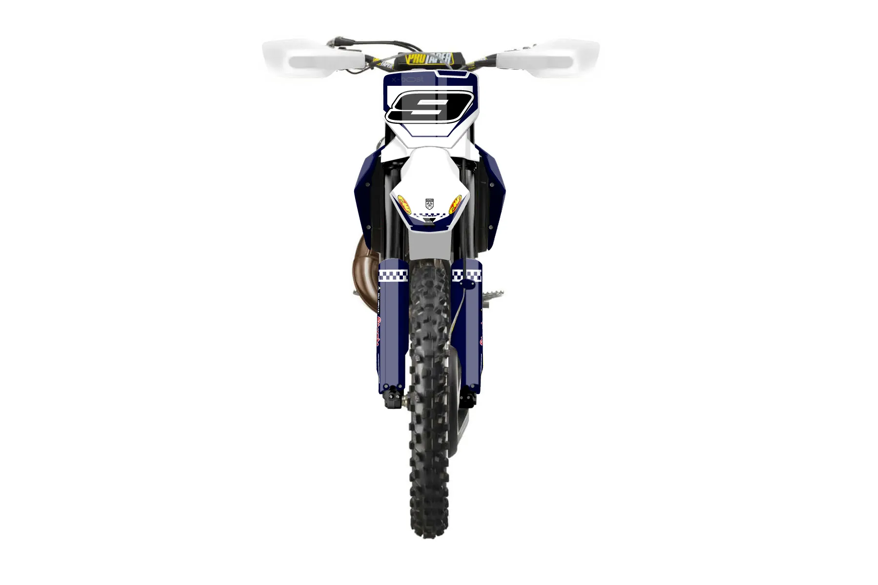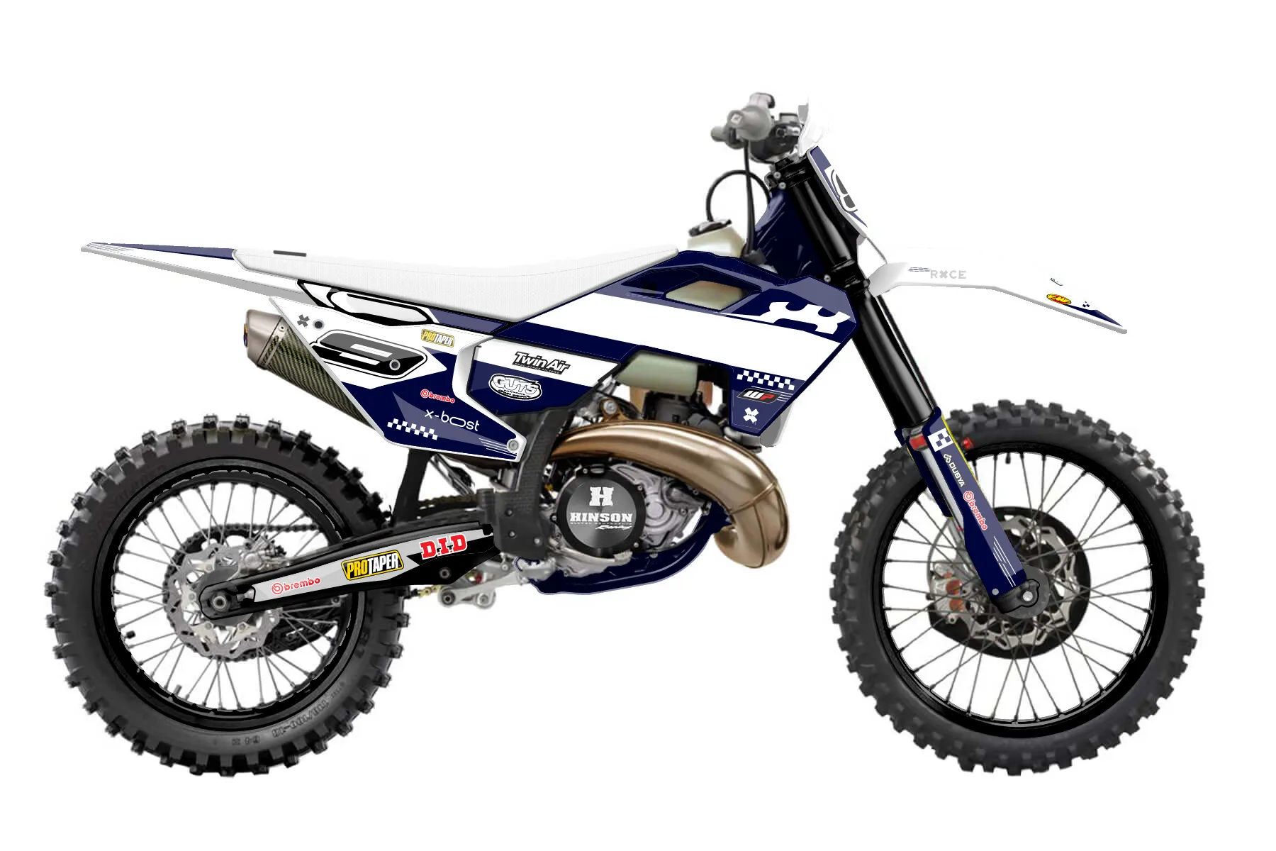 «ZTM TUNING» — готовый комплект графики серии Staple для Husqvarna Enduro Graphic Kit Husqvarna TX 300 2023. В комплекте: графика на бак и боковые облицовки, крылья (переднее и заднее), передний щиток, номерные таблички, защита вилки. Материал: ПВХ-винил 80 мкр с холодной ламинацией 300 мкр, общая толщина 380 мкр; покрытие глянцевое или матовое на выбор. Устойчив к UV-излучению, воде, бензину и мойке высокого давления. Клей акриловый на сольвентной основе — постоянный, для гибких пластиков. На простых поверхностях монтируется без нагрева; для сложных изгибов рекомендуем фен. Этот пресет можно заказать как есть или взять за основу в конструкторе: поменять цвета, добавить стартовый номер и свой бренд. Производство — 3–5 рабочих дней, доставка по России СДЭКом или Почтой, по СНГ — курьерскими службами.