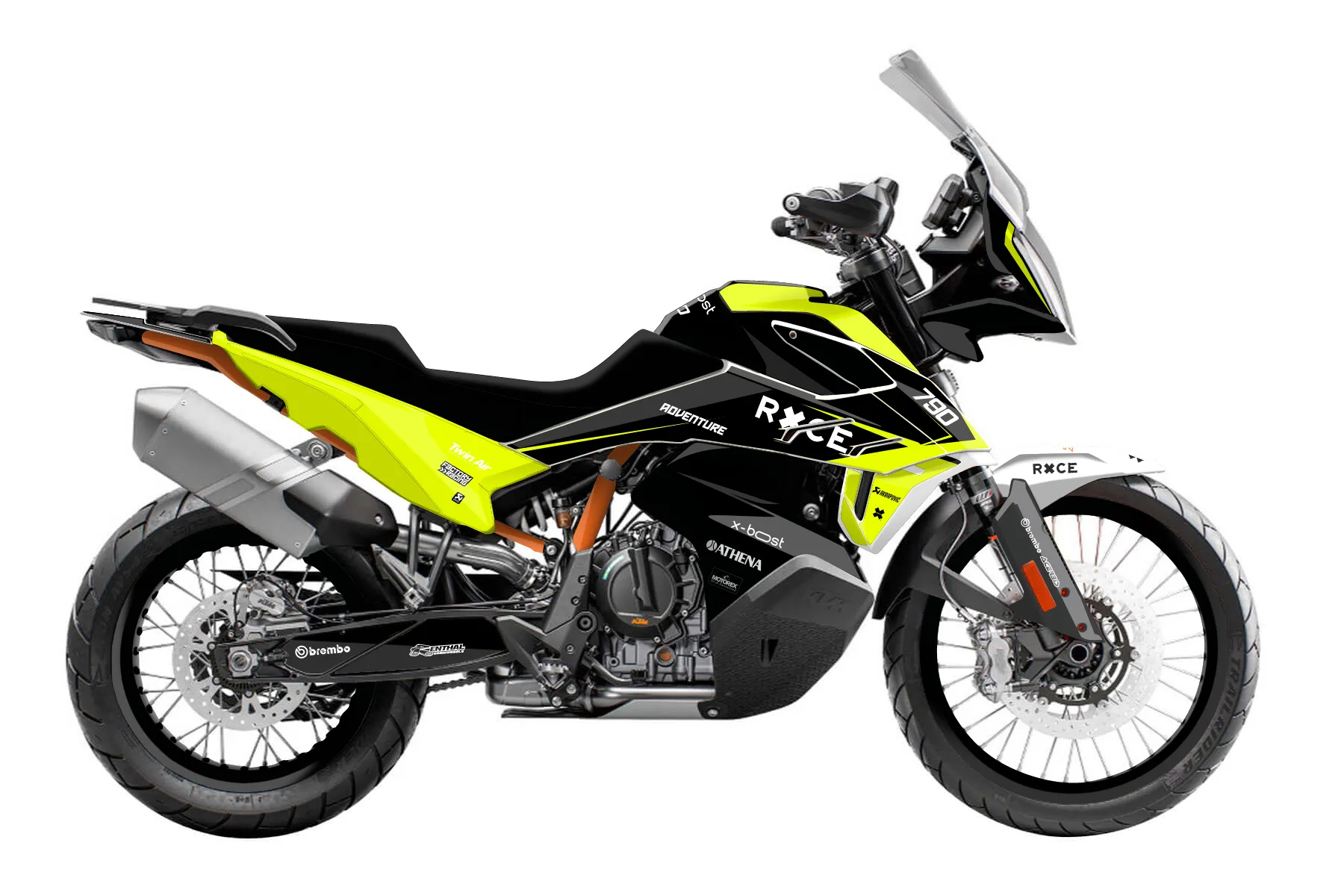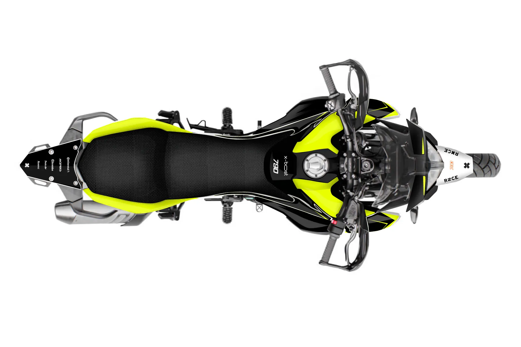 «Prime Neon» — готовый комплект графики серии Backup1 для KTM Adventure Graphic Kit KTM Adventure 790 2019. В комплекте: графика на бак и боковые облицовки, крылья (переднее и заднее), передний щиток, номерные таблички, защита вилки. Материал: ПВХ-винил 80 мкр с холодной ламинацией 300 мкр, общая толщина 380 мкр; покрытие глянцевое или матовое на выбор. Устойчив к UV-излучению, воде, бензину и мойке высокого давления. Клей акриловый на сольвентной основе — постоянный, для гибких пластиков. На простых поверхностях монтируется без нагрева; для сложных изгибов рекомендуем фен. Этот пресет можно заказать как есть или взять за основу в конструкторе: поменять цвета, добавить стартовый номер и свой бренд. Производство — 3–5 рабочих дней, доставка по России СДЭКом или Почтой, по СНГ — курьерскими службами.