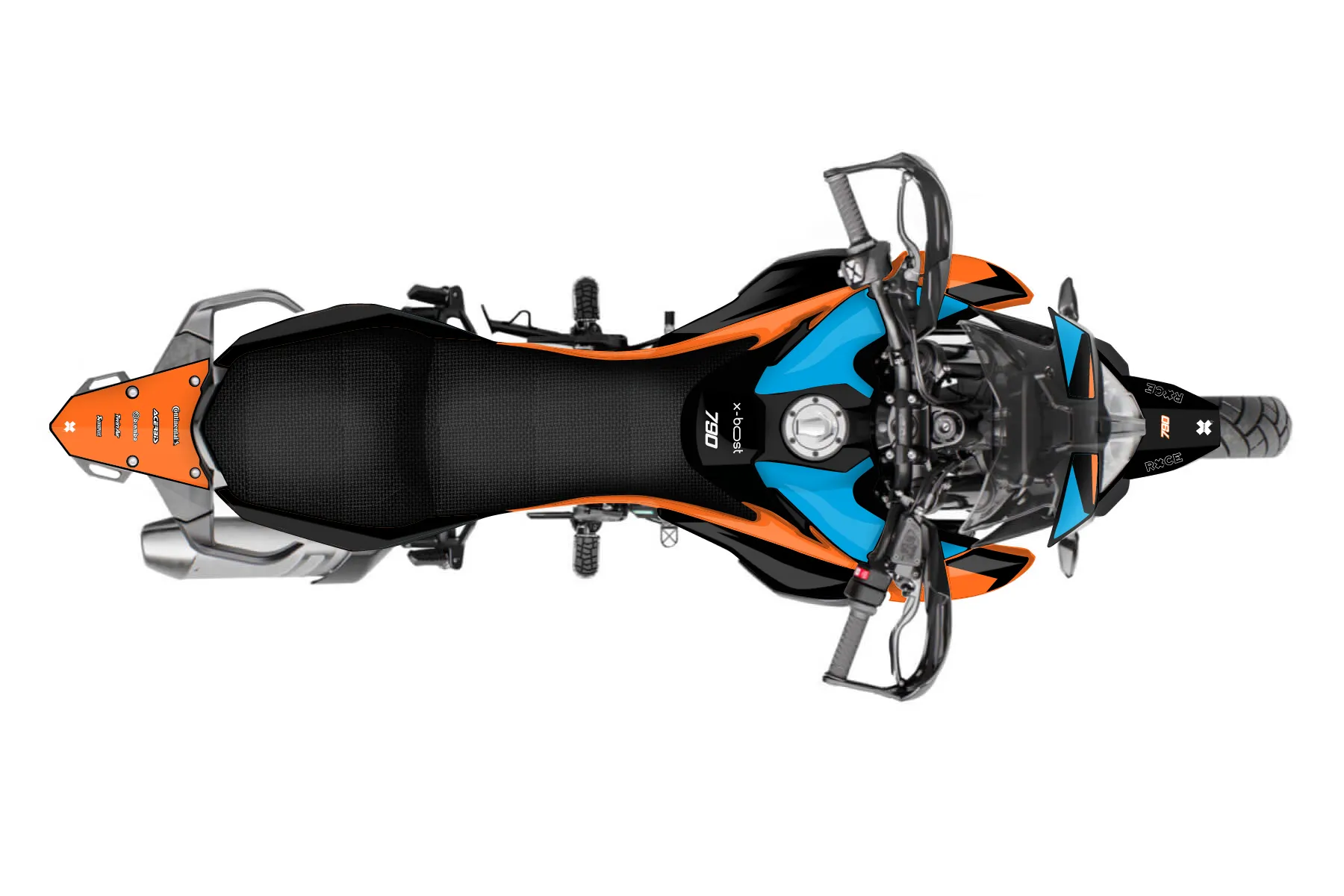 «Prime Pro» — готовый комплект графики серии Backup1 для KTM Adventure Graphic Kit KTM Adventure 790 2019. В комплекте: графика на бак и боковые облицовки, крылья (переднее и заднее), передний щиток, номерные таблички, защита вилки. Материал: ПВХ-винил 80 мкр с холодной ламинацией 300 мкр, общая толщина 380 мкр; покрытие глянцевое или матовое на выбор. Устойчив к UV-излучению, воде, бензину и мойке высокого давления. Клей акриловый на сольвентной основе — постоянный, для гибких пластиков. На простых поверхностях монтируется без нагрева; для сложных изгибов рекомендуем фен. Этот пресет можно заказать как есть или взять за основу в конструкторе: поменять цвета, добавить стартовый номер и свой бренд. Производство — 3–5 рабочих дней, доставка по России СДЭКом или Почтой, по СНГ — курьерскими службами.