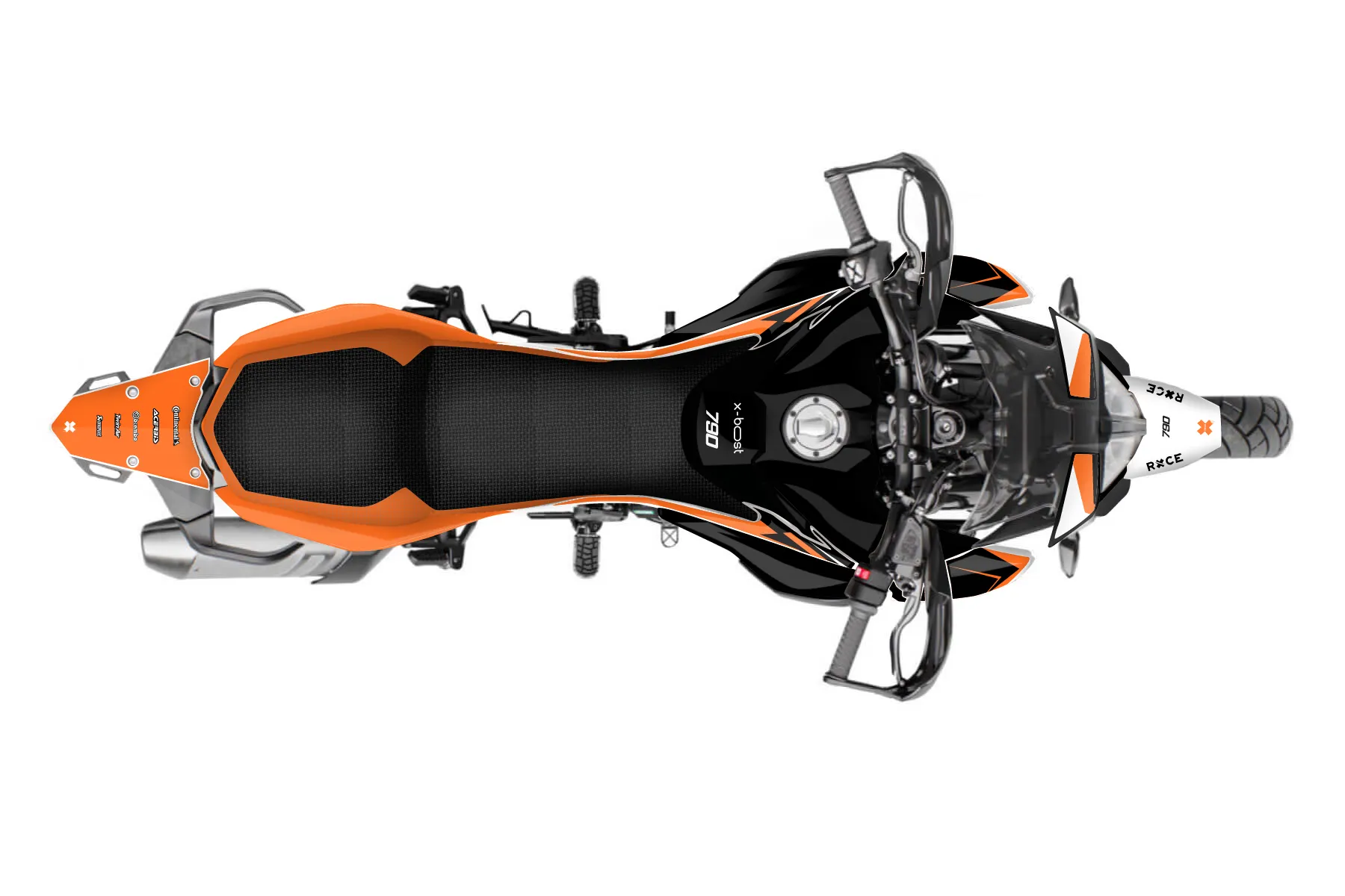 «Staple Basic» — готовый комплект графики серии Backup1 для KTM Adventure Graphic Kit KTM Adventure 790 2019. В комплекте: графика на бак и боковые облицовки, крылья (переднее и заднее), передний щиток, номерные таблички, защита вилки. Материал: ПВХ-винил 80 мкр с холодной ламинацией 300 мкр, общая толщина 380 мкр; покрытие глянцевое или матовое на выбор. Устойчив к UV-излучению, воде, бензину и мойке высокого давления. Клей акриловый на сольвентной основе — постоянный, для гибких пластиков. На простых поверхностях монтируется без нагрева; для сложных изгибов рекомендуем фен. Этот пресет можно заказать как есть или взять за основу в конструкторе: поменять цвета, добавить стартовый номер и свой бренд. Производство — 3–5 рабочих дней, доставка по России СДЭКом или Почтой, по СНГ — курьерскими службами.