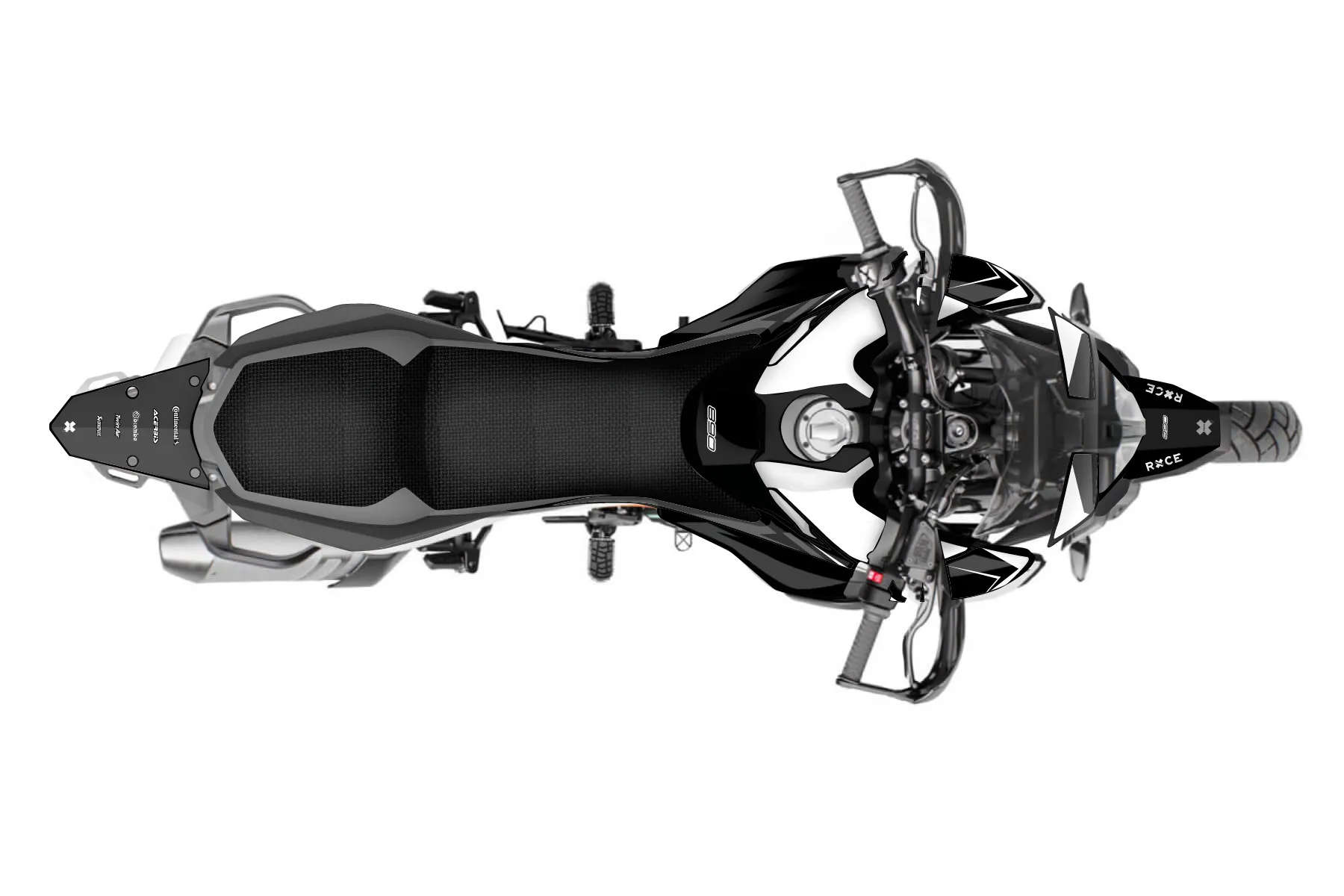 «Staple Pro» — готовый комплект графики серии Backup1 для KTM Adventure Graphic Kit KTM Adventure 890 2021. В комплекте: графика на бак и боковые облицовки, крылья (переднее и заднее), передний щиток, номерные таблички, защита вилки. Материал: ПВХ-винил 80 мкр с холодной ламинацией 300 мкр, общая толщина 380 мкр; покрытие глянцевое или матовое на выбор. Устойчив к UV-излучению, воде, бензину и мойке высокого давления. Клей акриловый на сольвентной основе — постоянный, для гибких пластиков. На простых поверхностях монтируется без нагрева; для сложных изгибов рекомендуем фен. Этот пресет можно заказать как есть или взять за основу в конструкторе: поменять цвета, добавить стартовый номер и свой бренд. Производство — 3–5 рабочих дней, доставка по России СДЭКом или Почтой, по СНГ — курьерскими службами.
