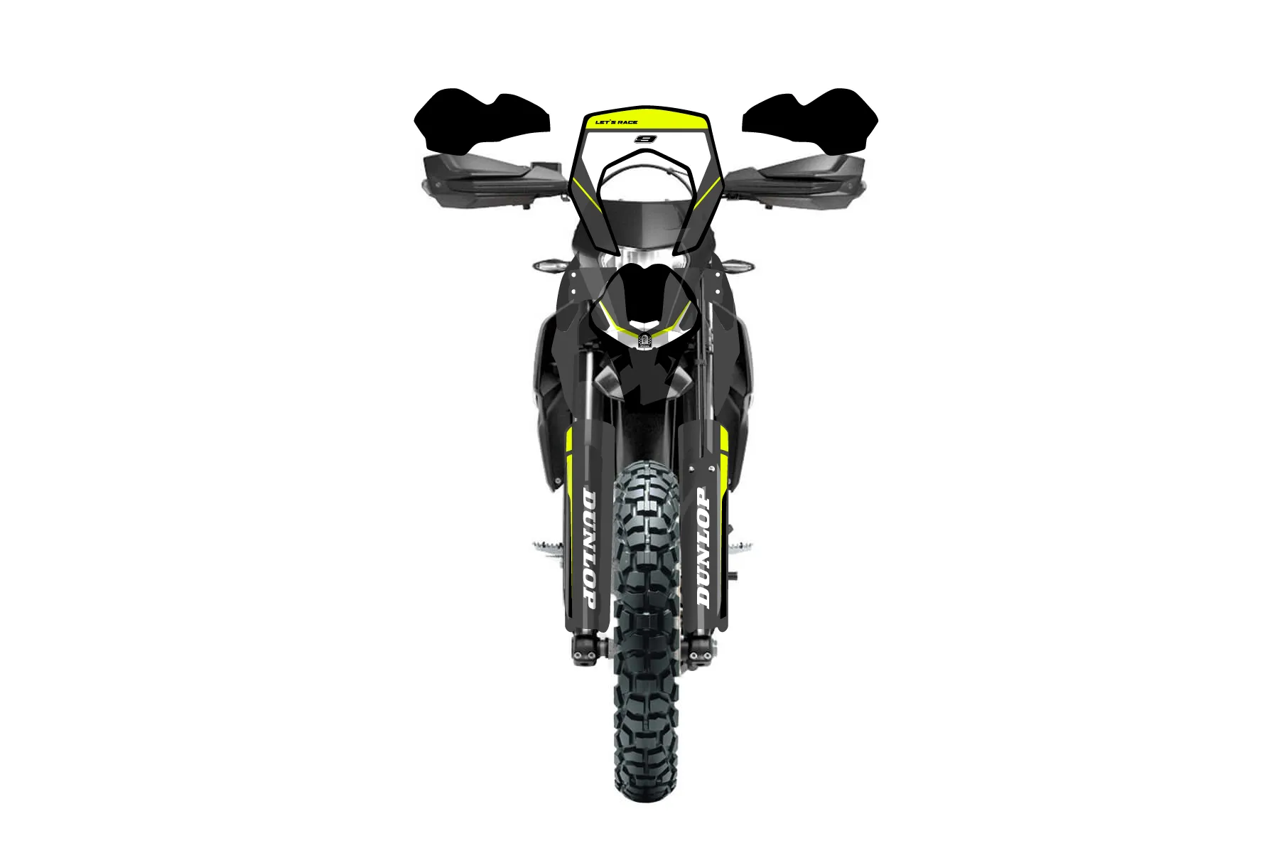 «Bright Neon» — готовый комплект графики серии Flow для KTM Enduro Graphic Kit KTM Enduro-R 690 2012. В комплекте: графика на бак и боковые облицовки, крылья (переднее и заднее), передний щиток, номерные таблички, защита вилки. Материал: ПВХ-винил 80 мкр с холодной ламинацией 300 мкр, общая толщина 380 мкр; покрытие глянцевое или матовое на выбор. Устойчив к UV-излучению, воде, бензину и мойке высокого давления. Клей акриловый на сольвентной основе — постоянный, для гибких пластиков. На простых поверхностях монтируется без нагрева; для сложных изгибов рекомендуем фен. Этот пресет можно заказать как есть или взять за основу в конструкторе: поменять цвета, добавить стартовый номер и свой бренд. Производство — 3–5 рабочих дней, доставка по России СДЭКом или Почтой, по СНГ — курьерскими службами.