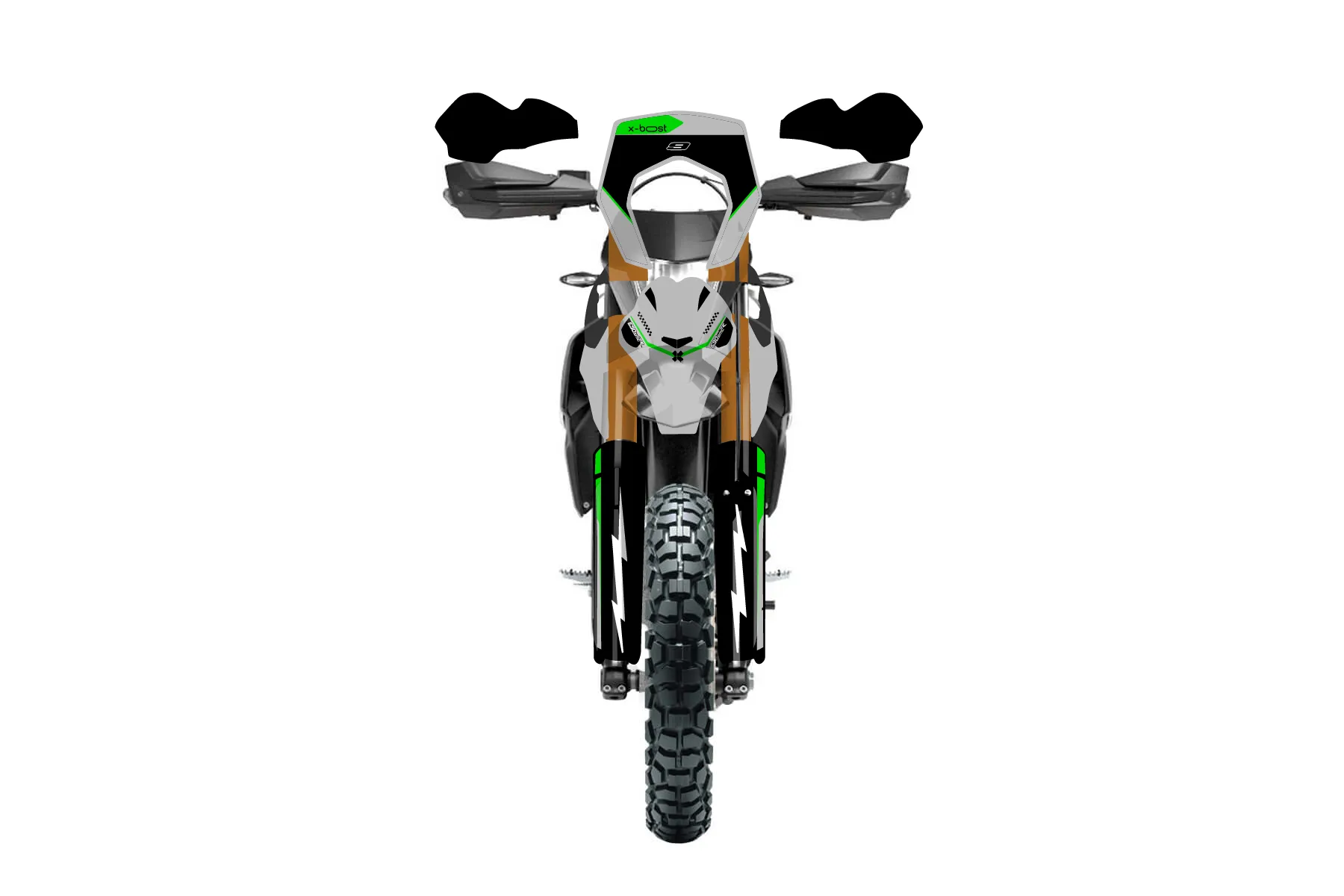 «Fluorescent» — готовый комплект графики серии Flow для KTM Enduro Graphic Kit KTM Enduro-R 690 2012. В комплекте: графика на бак и боковые облицовки, крылья (переднее и заднее), передний щиток, номерные таблички, защита вилки. Материал: ПВХ-винил 80 мкр с холодной ламинацией 300 мкр, общая толщина 380 мкр; покрытие глянцевое или матовое на выбор. Устойчив к UV-излучению, воде, бензину и мойке высокого давления. Клей акриловый на сольвентной основе — постоянный, для гибких пластиков. На простых поверхностях монтируется без нагрева; для сложных изгибов рекомендуем фен. Этот пресет можно заказать как есть или взять за основу в конструкторе: поменять цвета, добавить стартовый номер и свой бренд. Производство — 3–5 рабочих дней, доставка по России СДЭКом или Почтой, по СНГ — курьерскими службами.