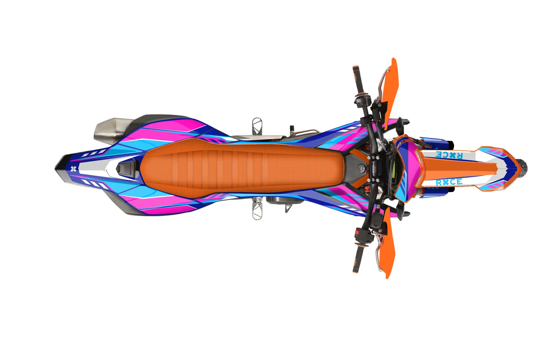 «690 retro» — готовый комплект графики серии Maverick для KTM Enduro Graphic Kit KTM Enduro-R 690 2012. В комплекте: графика на бак и боковые облицовки, крылья (переднее и заднее), передний щиток, номерные таблички, защита вилки. Материал: ПВХ-винил 80 мкр с холодной ламинацией 300 мкр, общая толщина 380 мкр; покрытие глянцевое или матовое на выбор. Устойчив к UV-излучению, воде, бензину и мойке высокого давления. Клей акриловый на сольвентной основе — постоянный, для гибких пластиков. На простых поверхностях монтируется без нагрева; для сложных изгибов рекомендуем фен. Этот пресет можно заказать как есть или взять за основу в конструкторе: поменять цвета, добавить стартовый номер и свой бренд. Производство — 3–5 рабочих дней, доставка по России СДЭКом или Почтой, по СНГ — курьерскими службами.