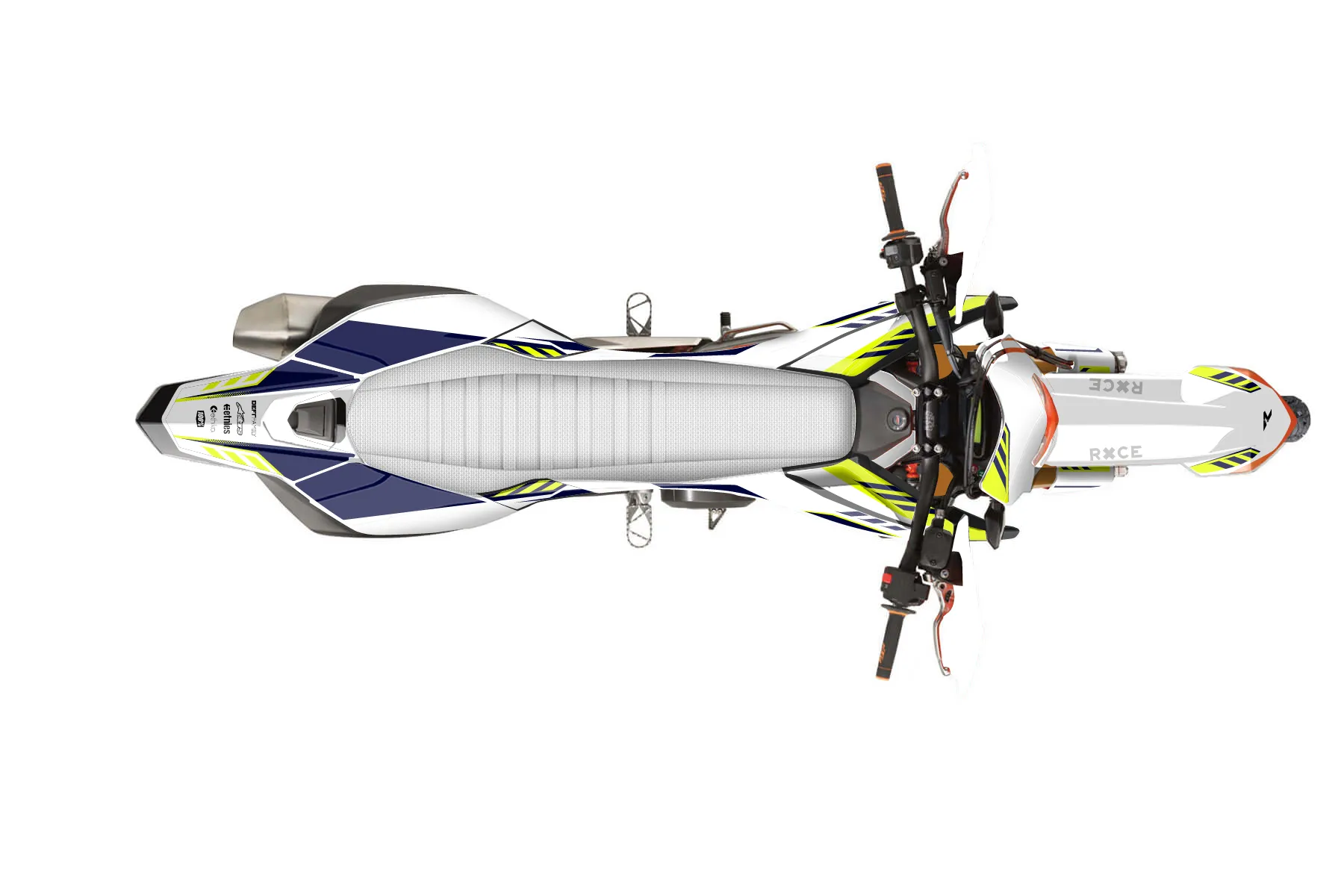 «Brilliant Neon» — готовый комплект графики серии Maverick для KTM Enduro Graphic Kit KTM Enduro-R 690 2012. В комплекте: графика на бак и боковые облицовки, крылья (переднее и заднее), передний щиток, номерные таблички, защита вилки. Материал: ПВХ-винил 80 мкр с холодной ламинацией 300 мкр, общая толщина 380 мкр; покрытие глянцевое или матовое на выбор. Устойчив к UV-излучению, воде, бензину и мойке высокого давления. Клей акриловый на сольвентной основе — постоянный, для гибких пластиков. На простых поверхностях монтируется без нагрева; для сложных изгибов рекомендуем фен. Этот пресет можно заказать как есть или взять за основу в конструкторе: поменять цвета, добавить стартовый номер и свой бренд. Производство — 3–5 рабочих дней, доставка по России СДЭКом или Почтой, по СНГ — курьерскими службами.