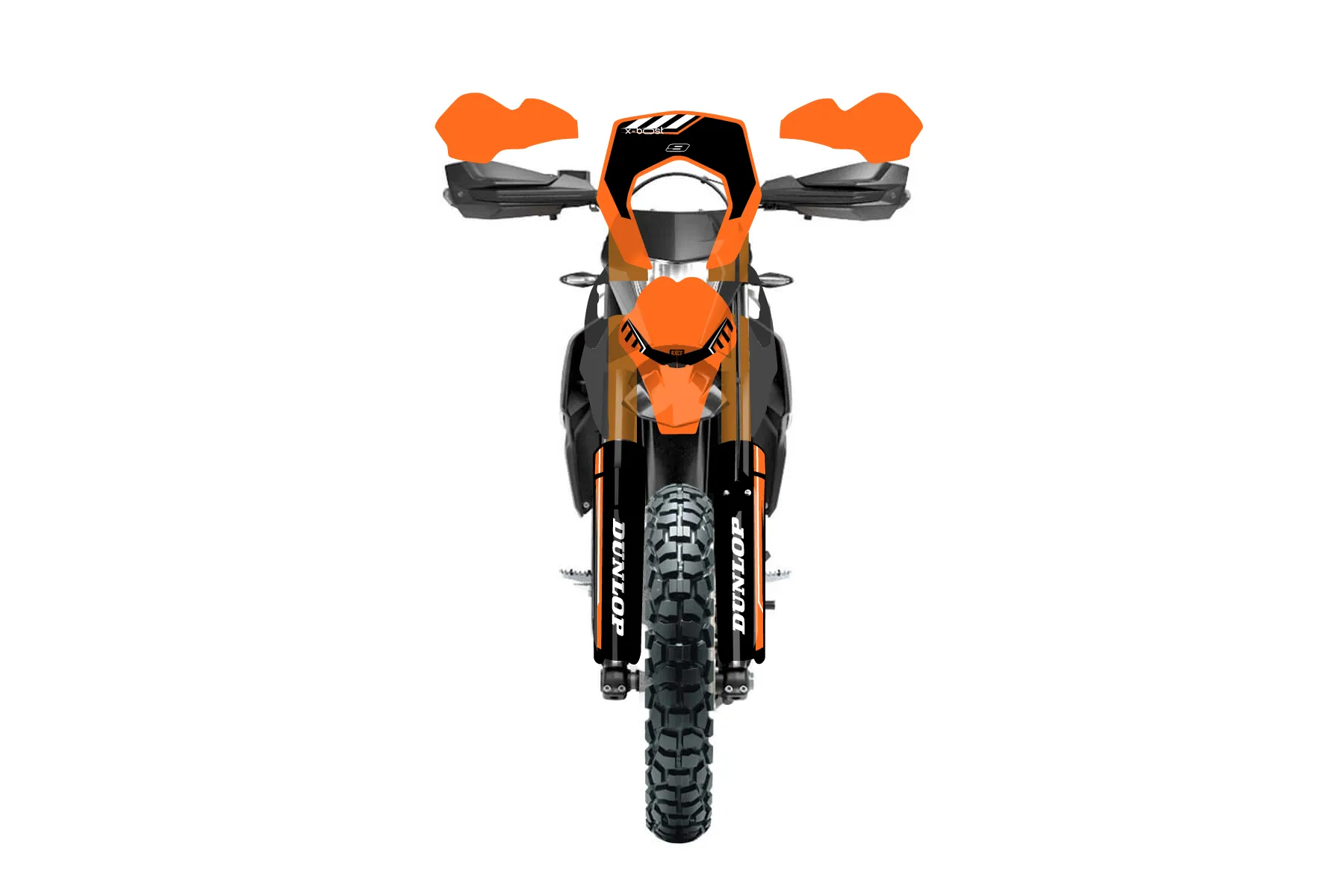 «Total» — готовый комплект графики серии Maverick для KTM Enduro Graphic Kit KTM Enduro-R 690 2012. В комплекте: графика на бак и боковые облицовки, крылья (переднее и заднее), передний щиток, номерные таблички, защита вилки. Материал: ПВХ-винил 80 мкр с холодной ламинацией 300 мкр, общая толщина 380 мкр; покрытие глянцевое или матовое на выбор. Устойчив к UV-излучению, воде, бензину и мойке высокого давления. Клей акриловый на сольвентной основе — постоянный, для гибких пластиков. На простых поверхностях монтируется без нагрева; для сложных изгибов рекомендуем фен. Этот пресет можно заказать как есть или взять за основу в конструкторе: поменять цвета, добавить стартовый номер и свой бренд. Производство — 3–5 рабочих дней, доставка по России СДЭКом или Почтой, по СНГ — курьерскими службами.