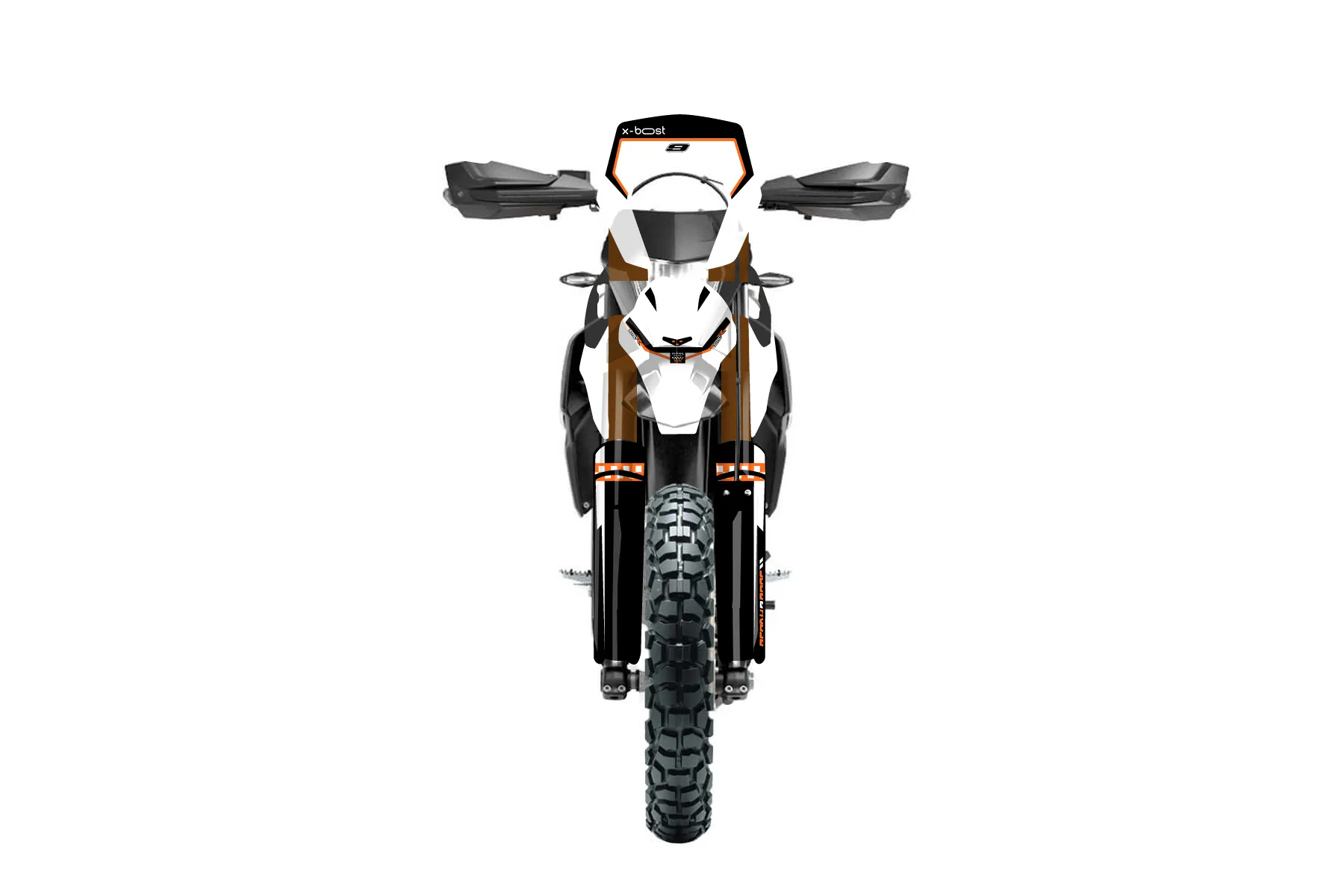 «Concrete» — готовый комплект графики серии Staple для KTM Enduro Graphic Kit KTM Enduro-R 690 2012. В комплекте: графика на бак и боковые облицовки, крылья (переднее и заднее), передний щиток, номерные таблички, защита вилки. Материал: ПВХ-винил 80 мкр с холодной ламинацией 300 мкр, общая толщина 380 мкр; покрытие глянцевое или матовое на выбор. Устойчив к UV-излучению, воде, бензину и мойке высокого давления. Клей акриловый на сольвентной основе — постоянный, для гибких пластиков. На простых поверхностях монтируется без нагрева; для сложных изгибов рекомендуем фен. Этот пресет можно заказать как есть или взять за основу в конструкторе: поменять цвета, добавить стартовый номер и свой бренд. Производство — 3–5 рабочих дней, доставка по России СДЭКом или Почтой, по СНГ — курьерскими службами.