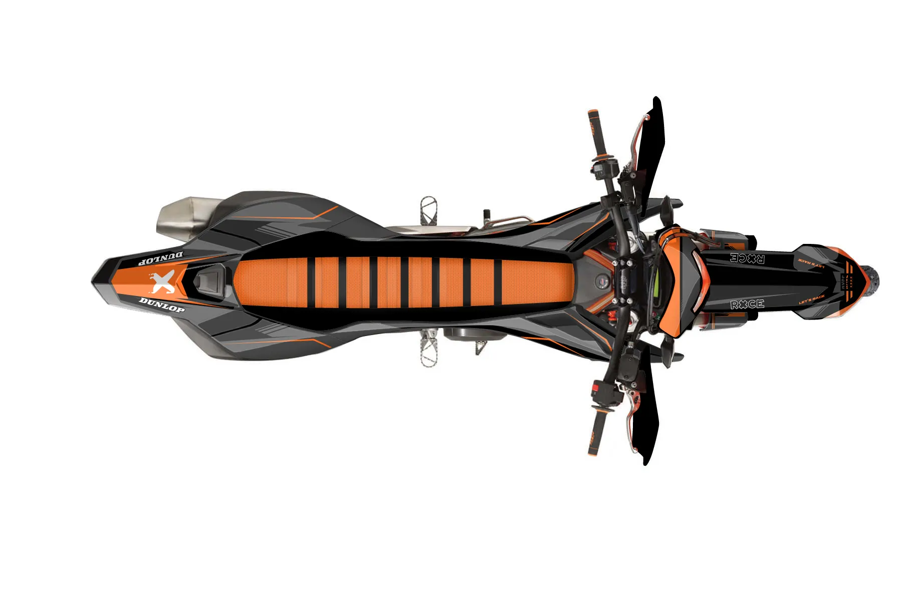 «Dynamic» — готовый комплект графики серии Untucked для KTM Enduro Graphic Kit KTM Enduro-R 690 2012. В комплекте: графика на бак и боковые облицовки, крылья (переднее и заднее), передний щиток, номерные таблички, защита вилки. Материал: ПВХ-винил 80 мкр с холодной ламинацией 300 мкр, общая толщина 380 мкр; покрытие глянцевое или матовое на выбор. Устойчив к UV-излучению, воде, бензину и мойке высокого давления. Клей акриловый на сольвентной основе — постоянный, для гибких пластиков. На простых поверхностях монтируется без нагрева; для сложных изгибов рекомендуем фен. Этот пресет можно заказать как есть или взять за основу в конструкторе: поменять цвета, добавить стартовый номер и свой бренд. Производство — 3–5 рабочих дней, доставка по России СДЭКом или Почтой, по СНГ — курьерскими службами.