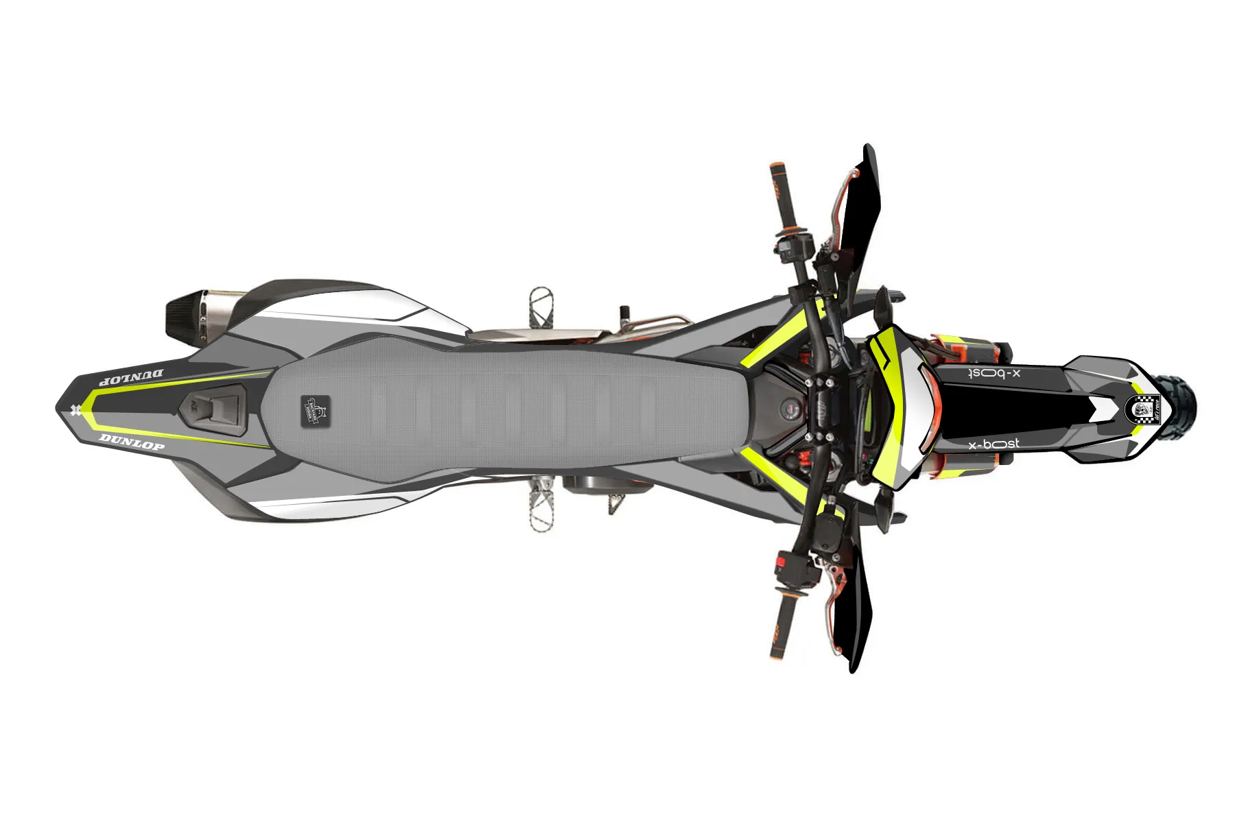 «Bright Neon» — готовый комплект графики серии Flow для KTM Enduro Graphic Kit KTM Enduro-R 690 2019. В комплекте: графика на бак и боковые облицовки, крылья (переднее и заднее), передний щиток, номерные таблички, защита вилки. Материал: ПВХ-винил 80 мкр с холодной ламинацией 300 мкр, общая толщина 380 мкр; покрытие глянцевое или матовое на выбор. Устойчив к UV-излучению, воде, бензину и мойке высокого давления. Клей акриловый на сольвентной основе — постоянный, для гибких пластиков. На простых поверхностях монтируется без нагрева; для сложных изгибов рекомендуем фен. Этот пресет можно заказать как есть или взять за основу в конструкторе: поменять цвета, добавить стартовый номер и свой бренд. Производство — 3–5 рабочих дней, доставка по России СДЭКом или Почтой, по СНГ — курьерскими службами.