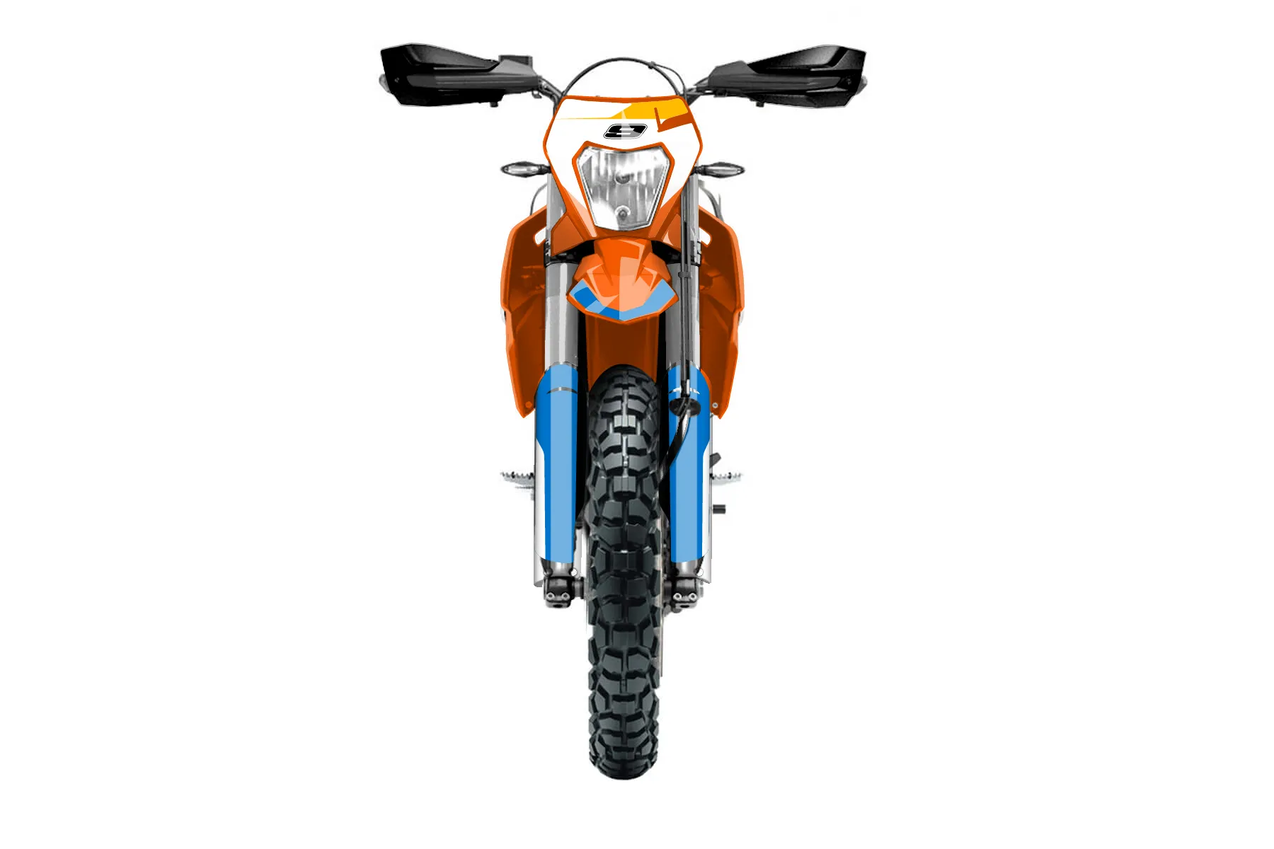 «CustomDesign» — готовый комплект графики серии Flow для KTM Enduro Graphic Kit KTM Enduro-R 690 2019. В комплекте: графика на бак и боковые облицовки, крылья (переднее и заднее), передний щиток, номерные таблички, защита вилки. Материал: ПВХ-винил 80 мкр с холодной ламинацией 300 мкр, общая толщина 380 мкр; покрытие глянцевое или матовое на выбор. Устойчив к UV-излучению, воде, бензину и мойке высокого давления. Клей акриловый на сольвентной основе — постоянный, для гибких пластиков. На простых поверхностях монтируется без нагрева; для сложных изгибов рекомендуем фен. Этот пресет можно заказать как есть или взять за основу в конструкторе: поменять цвета, добавить стартовый номер и свой бренд. Производство — 3–5 рабочих дней, доставка по России СДЭКом или Почтой, по СНГ — курьерскими службами.