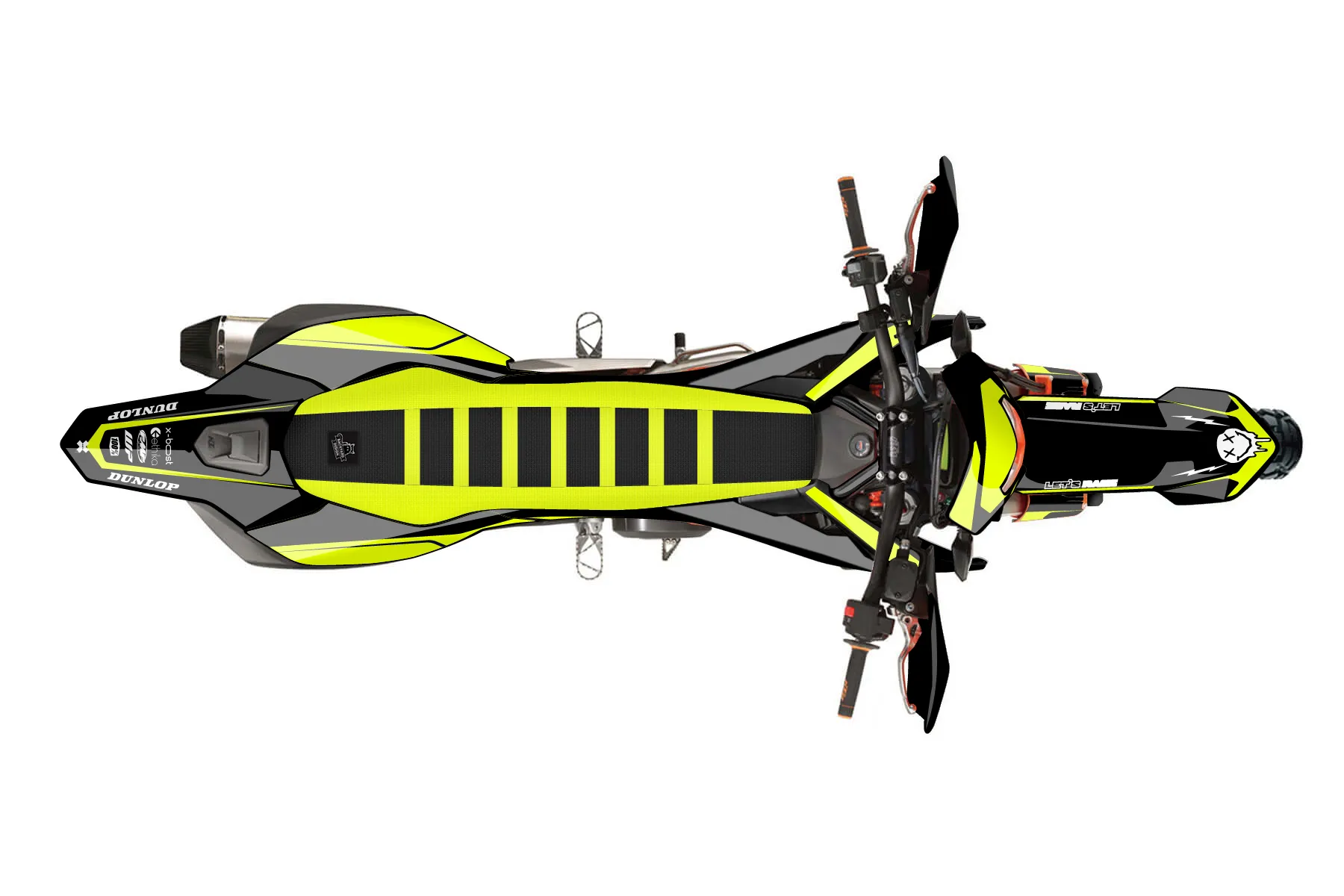 «Grip Neon» — готовый комплект графики серии Flow для KTM Enduro Graphic Kit KTM Enduro-R 690 2019. В комплекте: графика на бак и боковые облицовки, крылья (переднее и заднее), передний щиток, номерные таблички, защита вилки. Материал: ПВХ-винил 80 мкр с холодной ламинацией 300 мкр, общая толщина 380 мкр; покрытие глянцевое или матовое на выбор. Устойчив к UV-излучению, воде, бензину и мойке высокого давления. Клей акриловый на сольвентной основе — постоянный, для гибких пластиков. На простых поверхностях монтируется без нагрева; для сложных изгибов рекомендуем фен. Этот пресет можно заказать как есть или взять за основу в конструкторе: поменять цвета, добавить стартовый номер и свой бренд. Производство — 3–5 рабочих дней, доставка по России СДЭКом или Почтой, по СНГ — курьерскими службами.