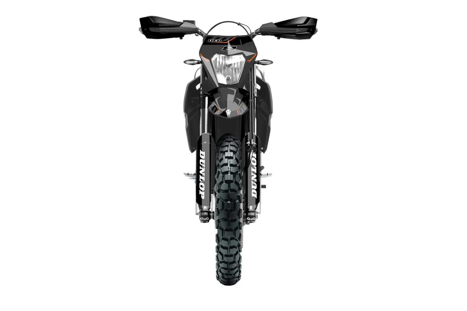 «Bang» — готовый комплект графики серии Maverick для KTM Enduro Graphic Kit KTM Enduro-R 690 2019. В комплекте: графика на бак и боковые облицовки, крылья (переднее и заднее), передний щиток, номерные таблички, защита вилки. Материал: ПВХ-винил 80 мкр с холодной ламинацией 300 мкр, общая толщина 380 мкр; покрытие глянцевое или матовое на выбор. Устойчив к UV-излучению, воде, бензину и мойке высокого давления. Клей акриловый на сольвентной основе — постоянный, для гибких пластиков. На простых поверхностях монтируется без нагрева; для сложных изгибов рекомендуем фен. Этот пресет можно заказать как есть или взять за основу в конструкторе: поменять цвета, добавить стартовый номер и свой бренд. Производство — 3–5 рабочих дней, доставка по России СДЭКом или Почтой, по СНГ — курьерскими службами.