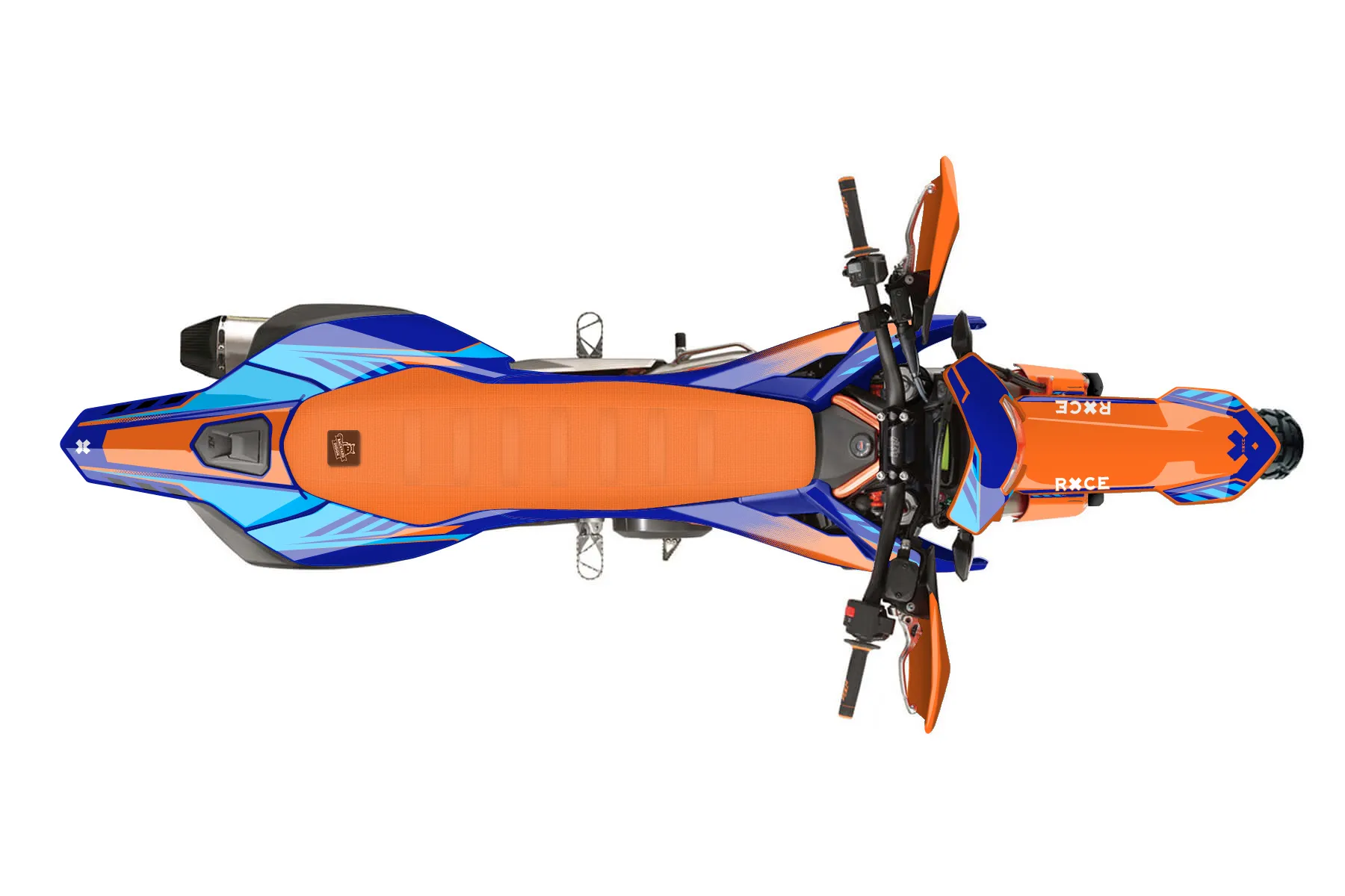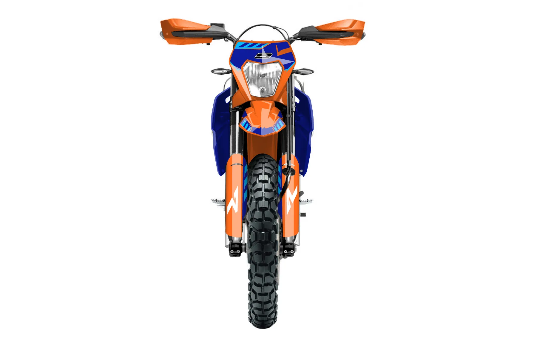 «Sharp» — готовый комплект графики серии Maverick для KTM Enduro Graphic Kit KTM Enduro-R 690 2019. В комплекте: графика на бак и боковые облицовки, крылья (переднее и заднее), передний щиток, номерные таблички, защита вилки. Материал: ПВХ-винил 80 мкр с холодной ламинацией 300 мкр, общая толщина 380 мкр; покрытие глянцевое или матовое на выбор. Устойчив к UV-излучению, воде, бензину и мойке высокого давления. Клей акриловый на сольвентной основе — постоянный, для гибких пластиков. На простых поверхностях монтируется без нагрева; для сложных изгибов рекомендуем фен. Этот пресет можно заказать как есть или взять за основу в конструкторе: поменять цвета, добавить стартовый номер и свой бренд. Производство — 3–5 рабочих дней, доставка по России СДЭКом или Почтой, по СНГ — курьерскими службами.